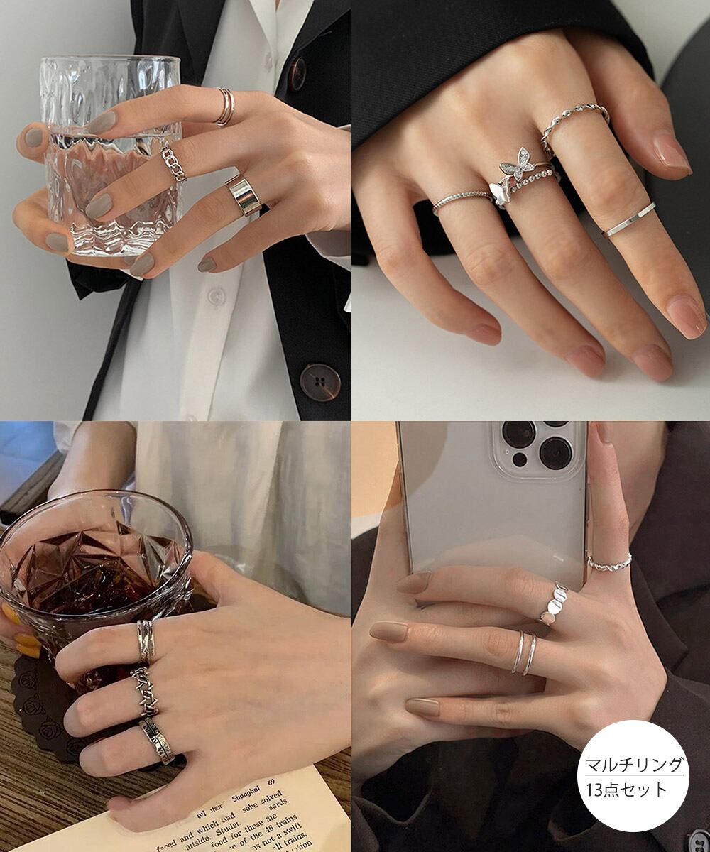 ヴィンテージ調指輪 13点セット アクセサリー 蝶々メタルリング シンプル 大人かわいい プチプラ小物 韓国ファッションリングセット韓国風 女性プレゼント人気 重ね付け指輪お洒落それぞれデザインの異なるリング13点セット