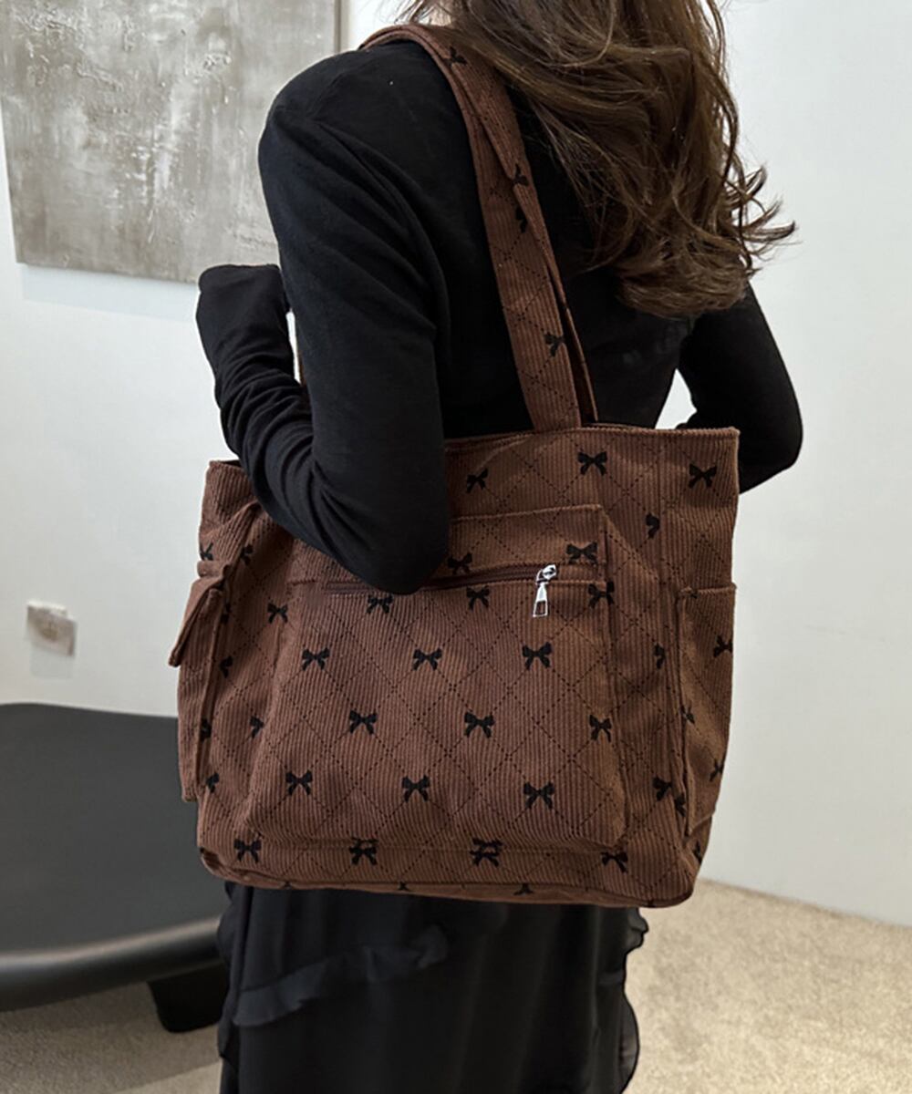 【日本倉庫即納】 コーデュロイ マルチポケットトートバッグ