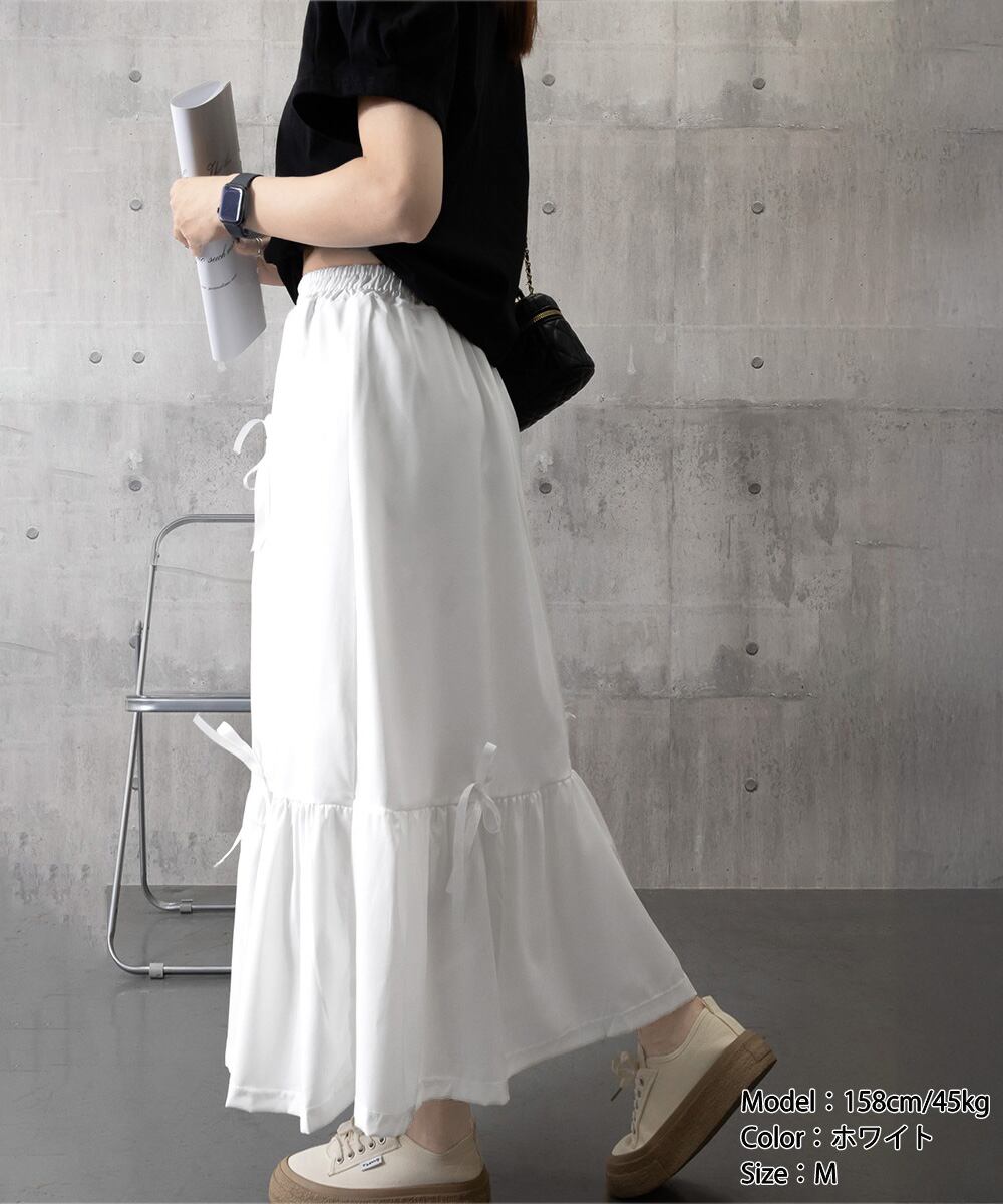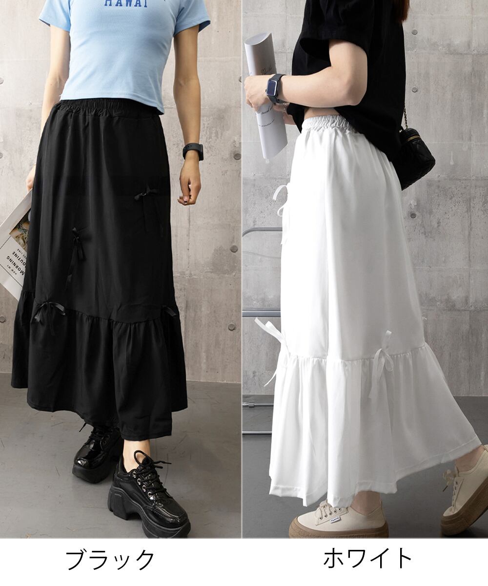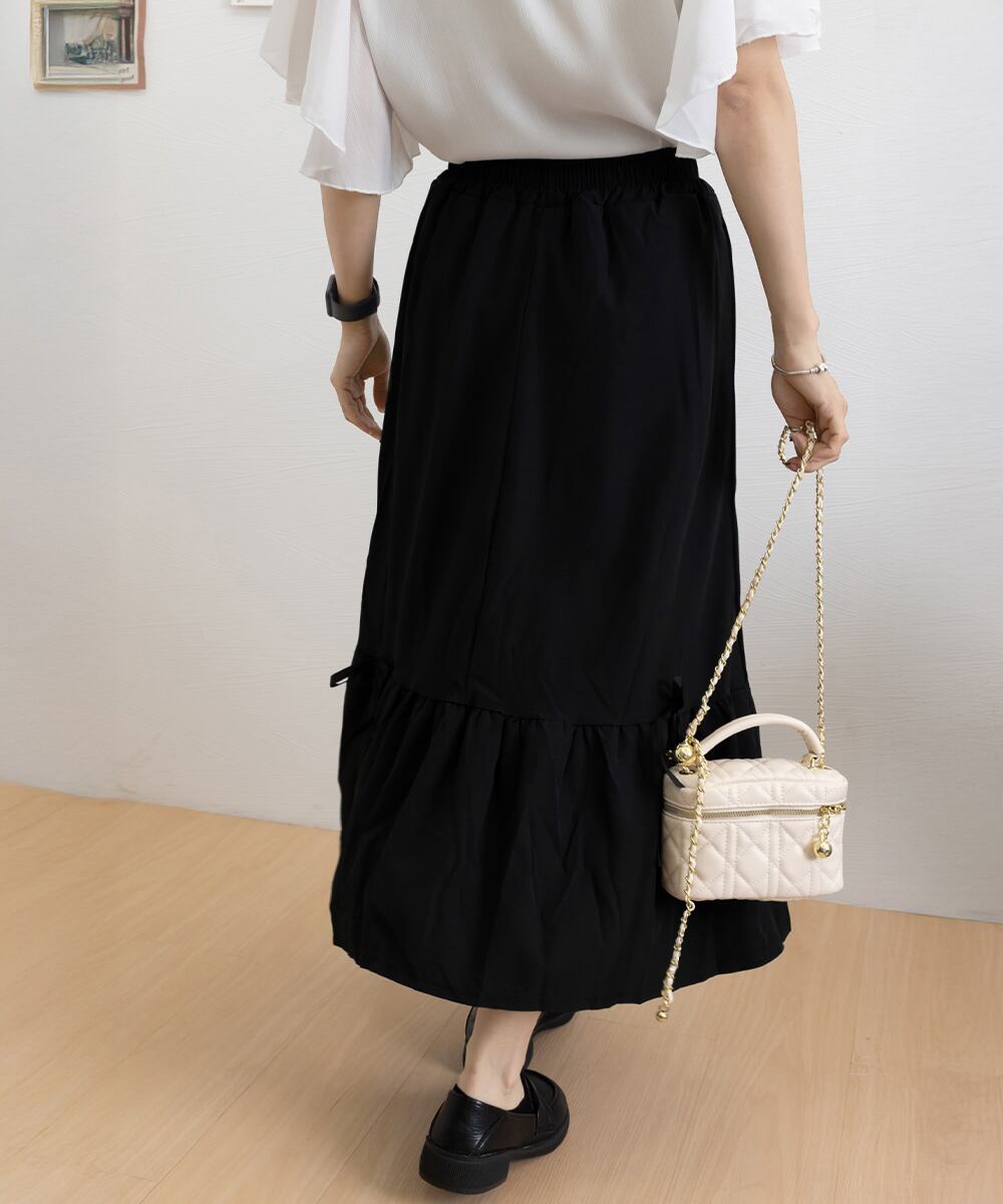 【日本倉庫即納】 リボンティアードスカート ロングスカート