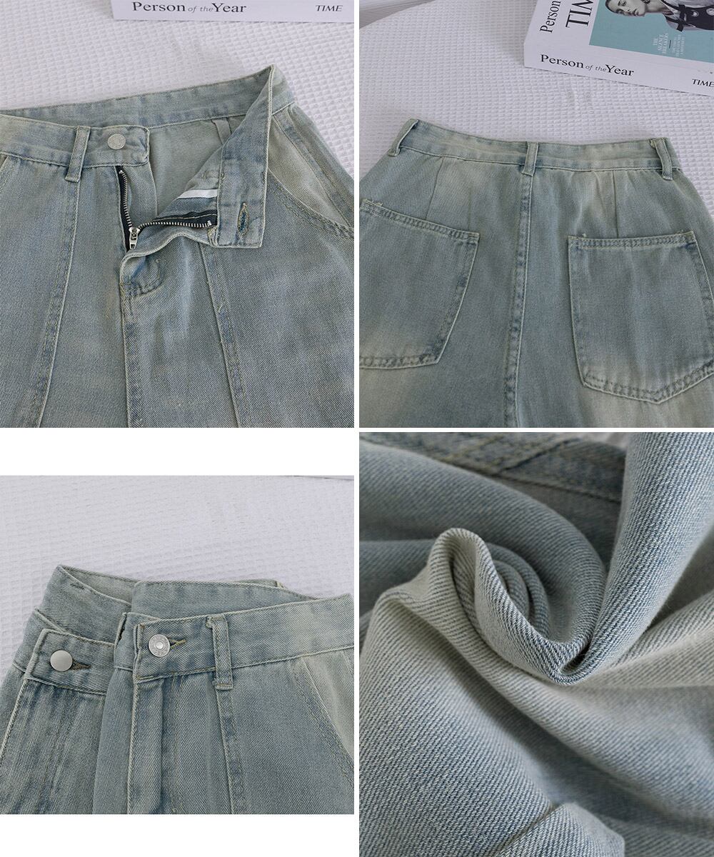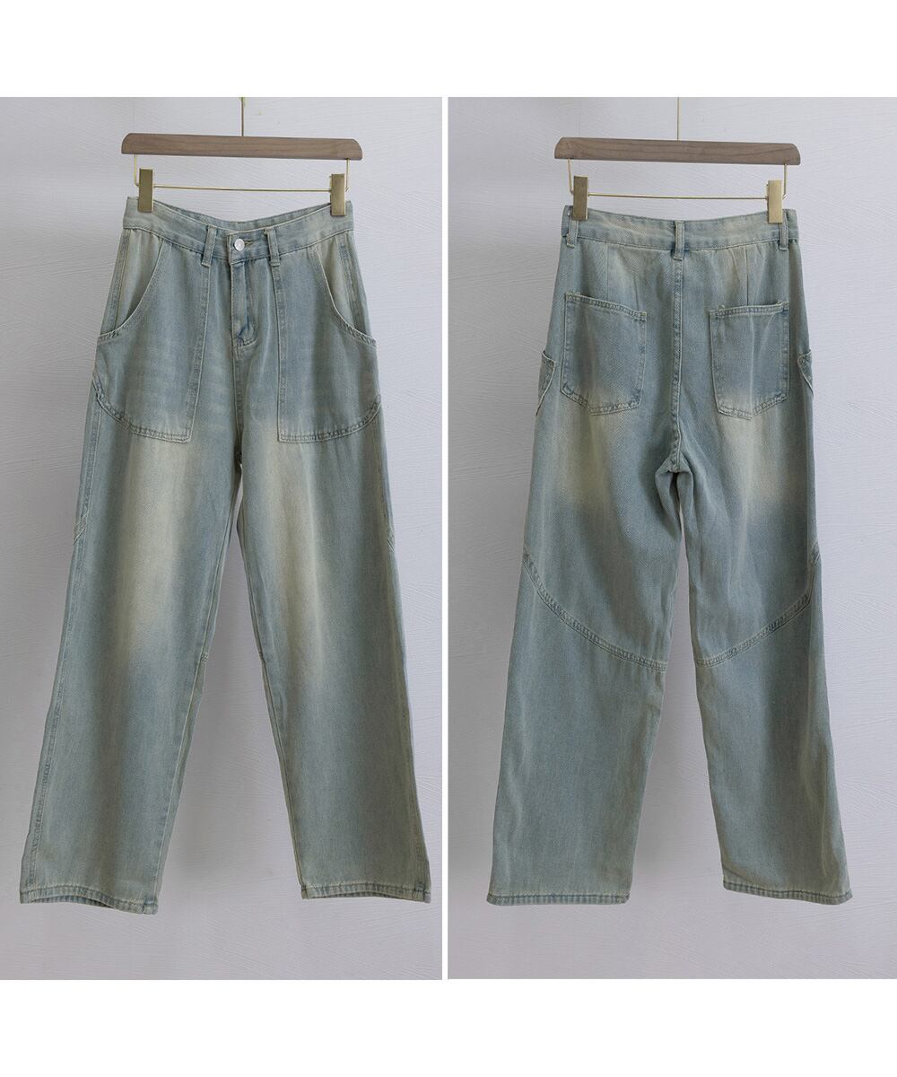 ウォッシュデニムワイドパンツ 着やせ おしゃれ ヴィンテージルーズジーパン カジュアルバギージーンズ ヒップホップパンツゆったりデニム美脚 韓国風 ストリート 体型カバーボトムストレンド感のあるルーズシルエットが魅力のワイドデニムパンツ。