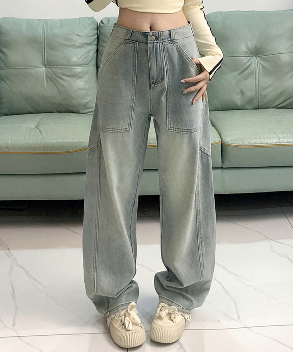 【日本倉庫即納】 バギーデニムパンツ レディース レトロ風