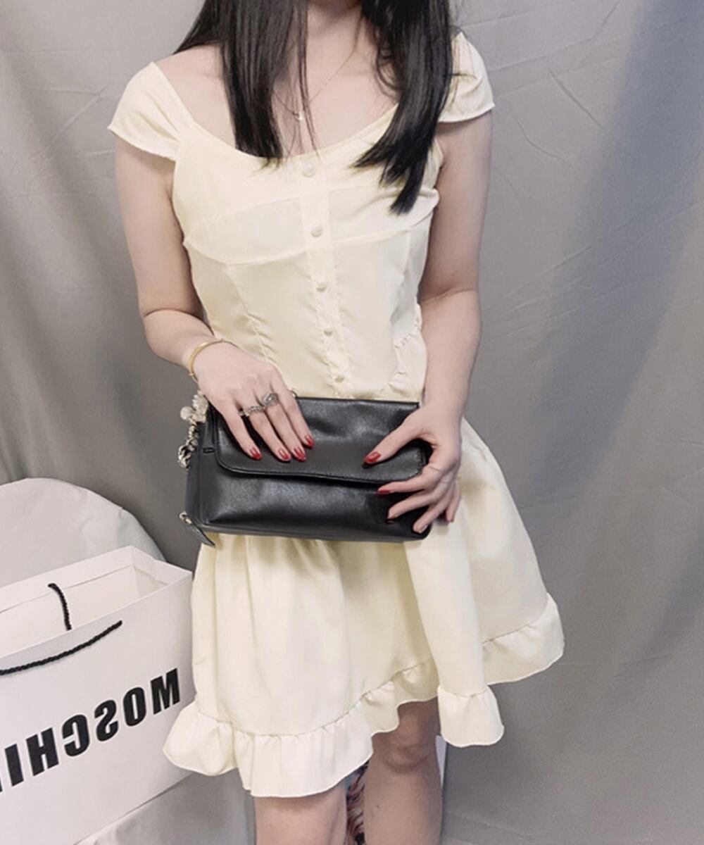 パールアクセやミニバッグを添えて、甘さ引き立つフェアリールックに。素材:ポリエステル100%カラー:アイボリー