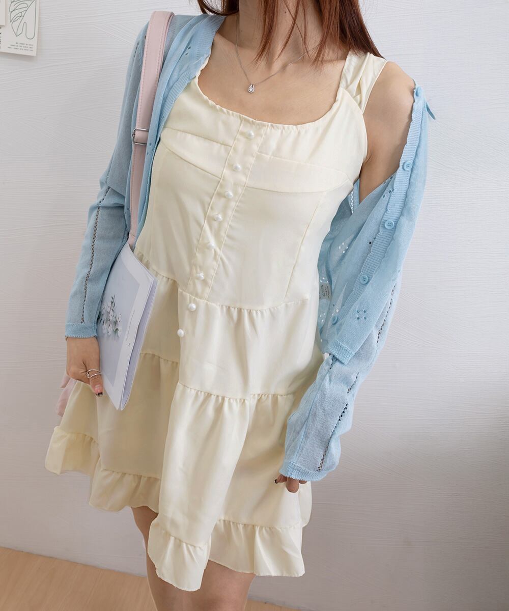 【日本倉庫即納】 ティアード ミニワンピース ノースリーブ