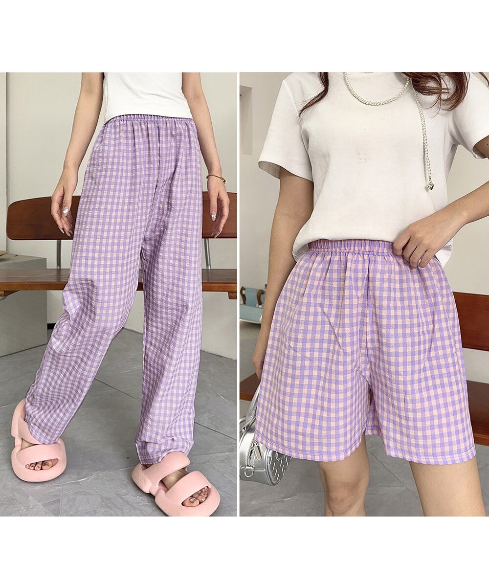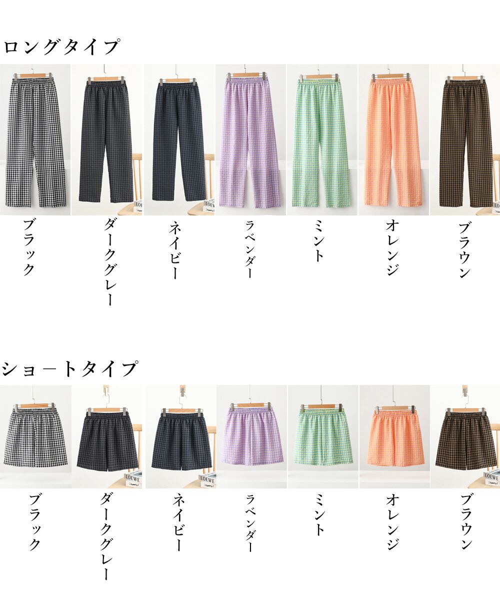 丈選べる チェック柄ロングパンツ涼しい 格子柄ショートパンツ ウエストゴム 着やせワイドパンツ 体型カバー 部屋着パンツゆったりボトムス夏 ルームウェアパンツ イージーパンツ大人夏にぴったりな軽やかチェック柄パンツ、ショートとロングの2タイプから選べる。