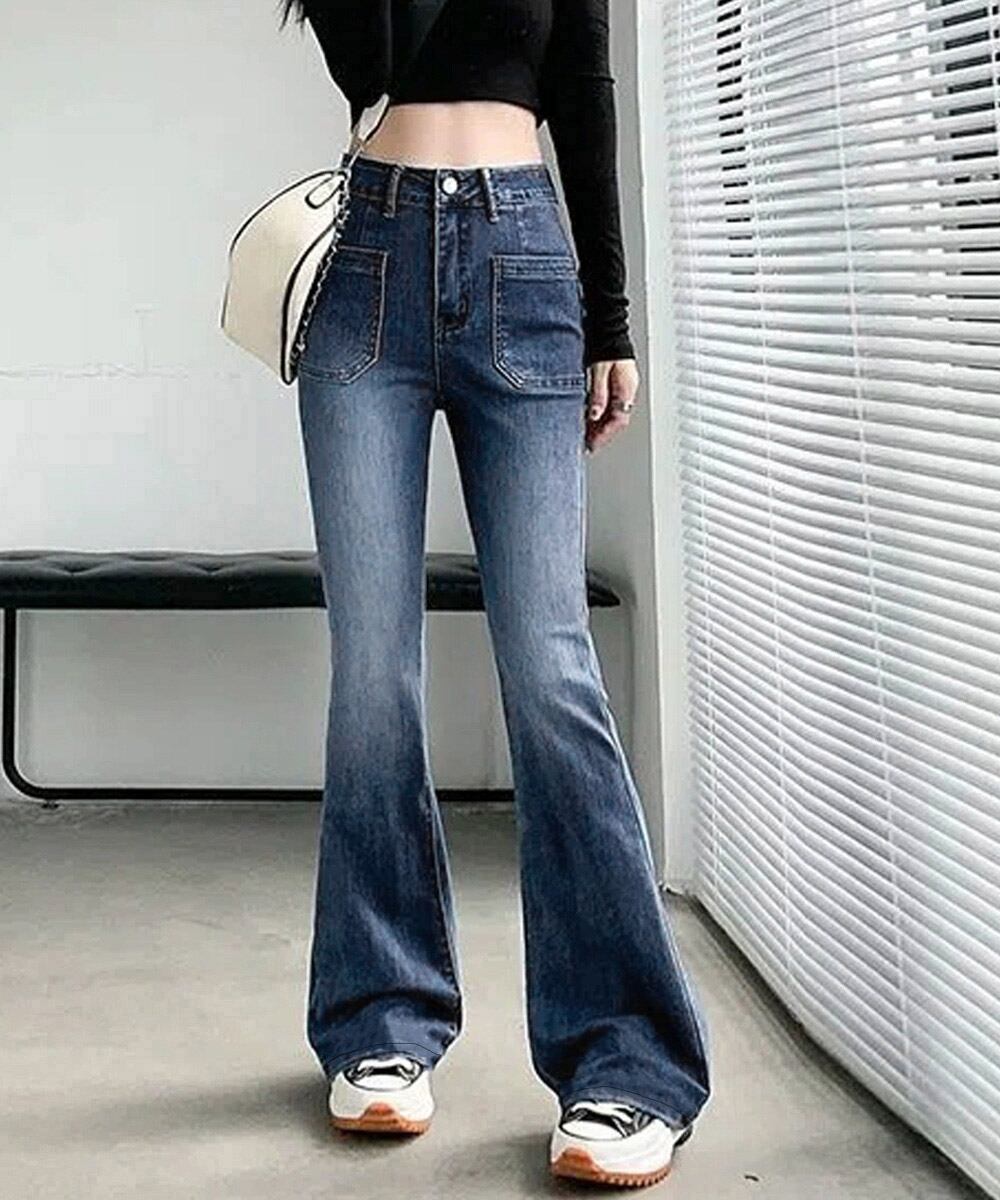 ブーツカットデニム おしゃれ フロントポケットジーパン カジュアルきれいめ 細見え ハイウエストジーンズ美脚脚長 着やせレトロ風ジーンズ ビンテージ デニム カジュアルパンツ女シンプルでカジュアルからきれいめまで幅広く対応。ハイウエストで脚をすっきり見せてくれるセミフレアデニムパンツ。