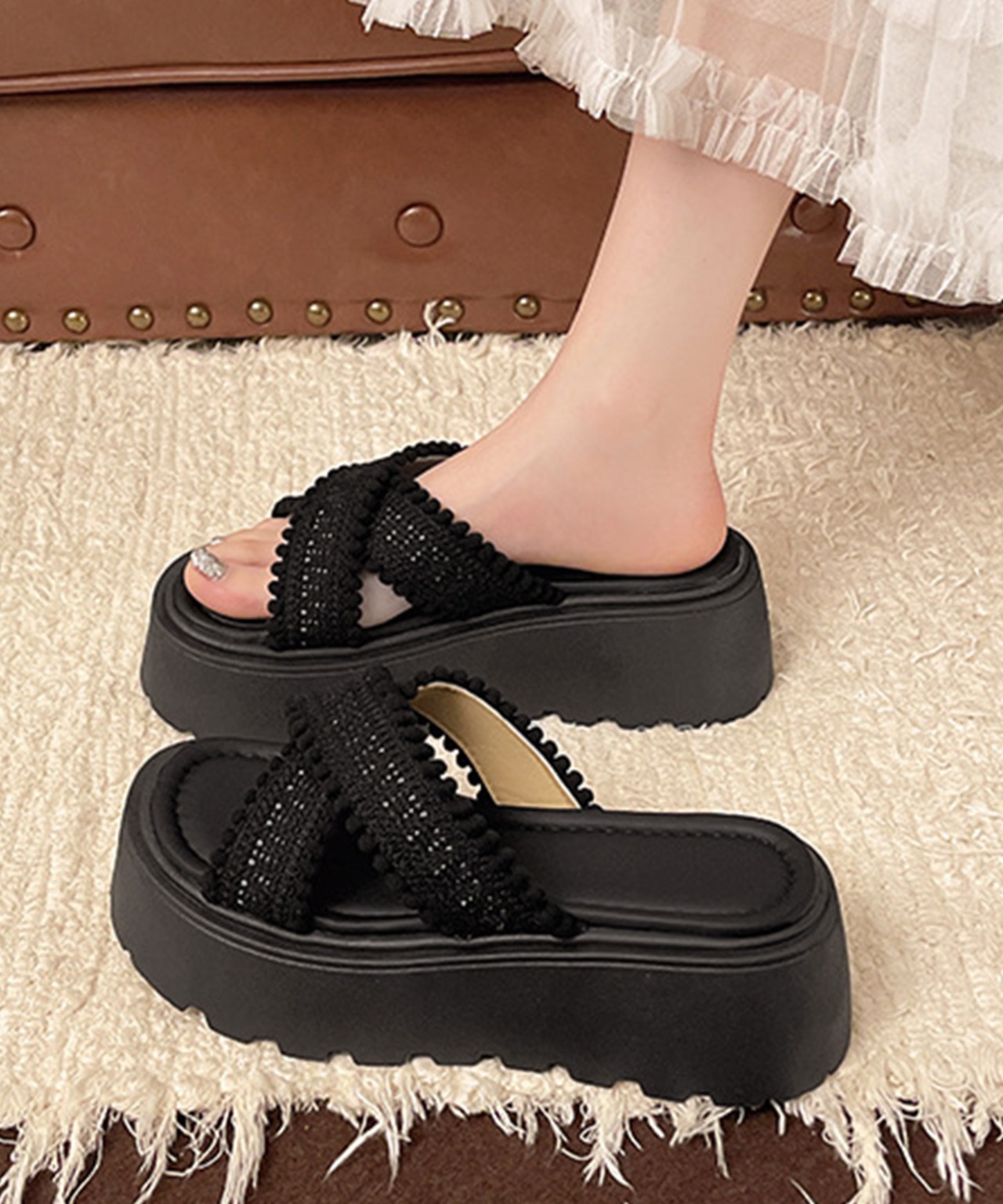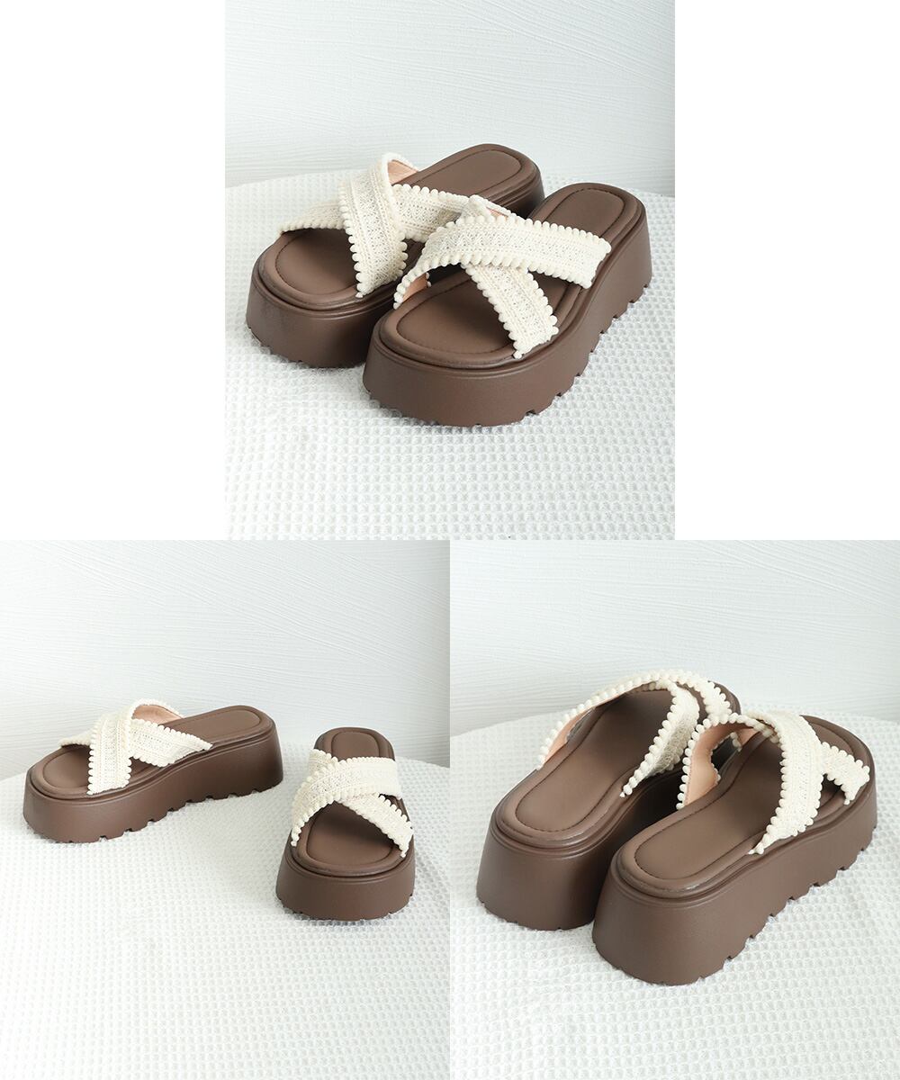 【日本倉庫即納】 厚底サンダル レディース クロッシー編み