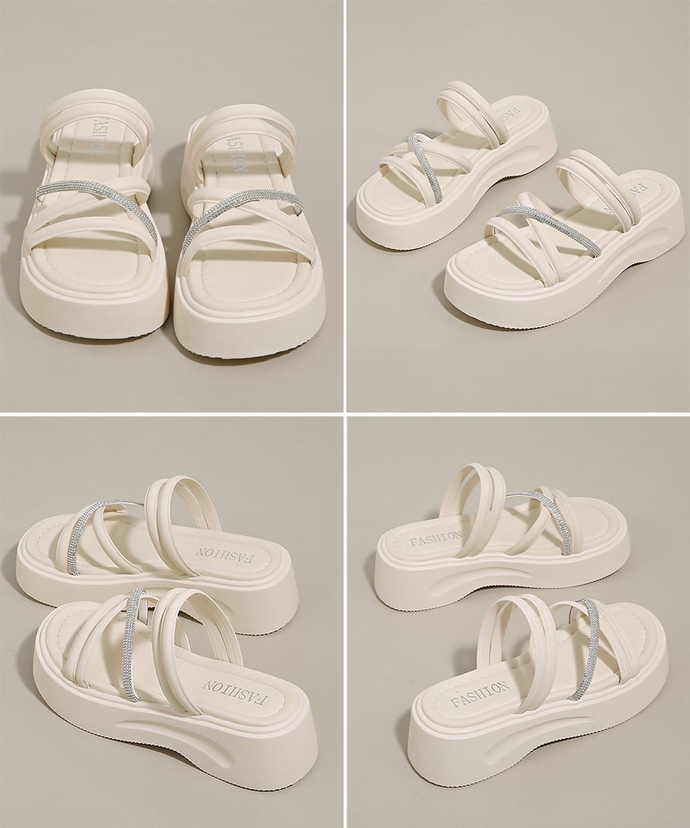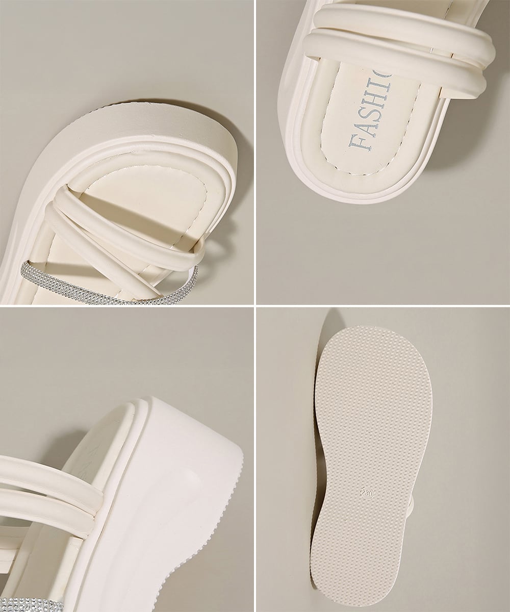 シンプルでモダンなデザインのラインストーン付き厚底サンダル。