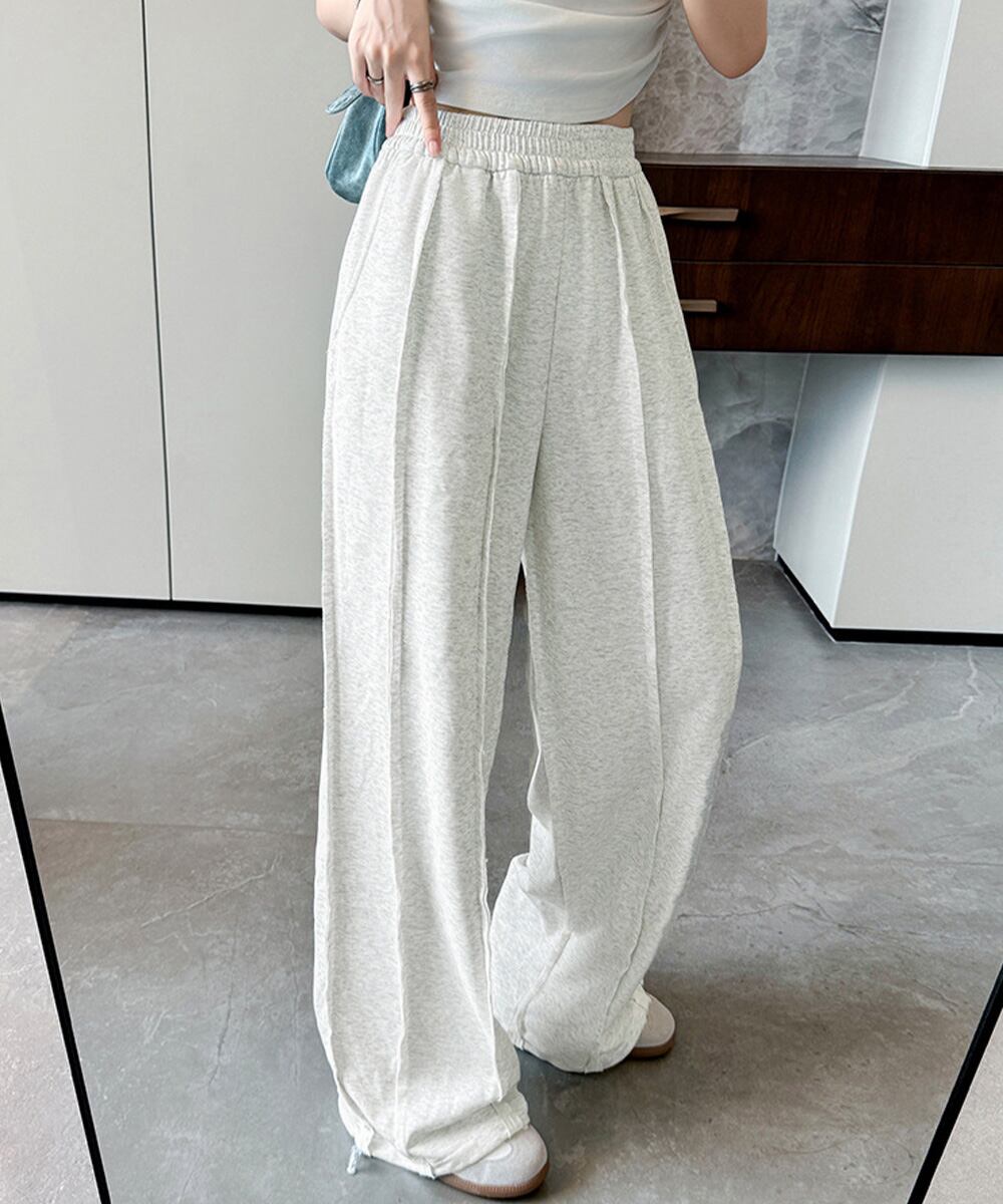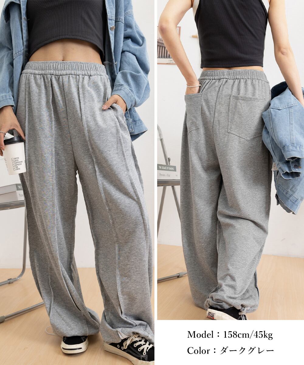 レディース ドレープ感 ストレートパンツ ウエストゴム ゆったり ロングパンツ カジュアル楽ちんイージーパンツ美脚 無地パンツ 細見え 脚長見せ パンツ黒 体型カバーボトムスフロントラインデザインとゆったりとしたシルエットが魅力のスウェットワイドパンツ
