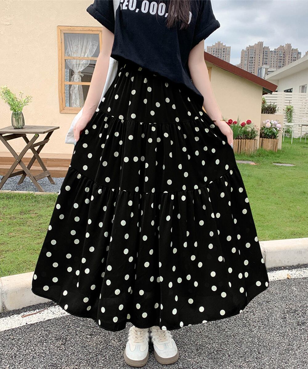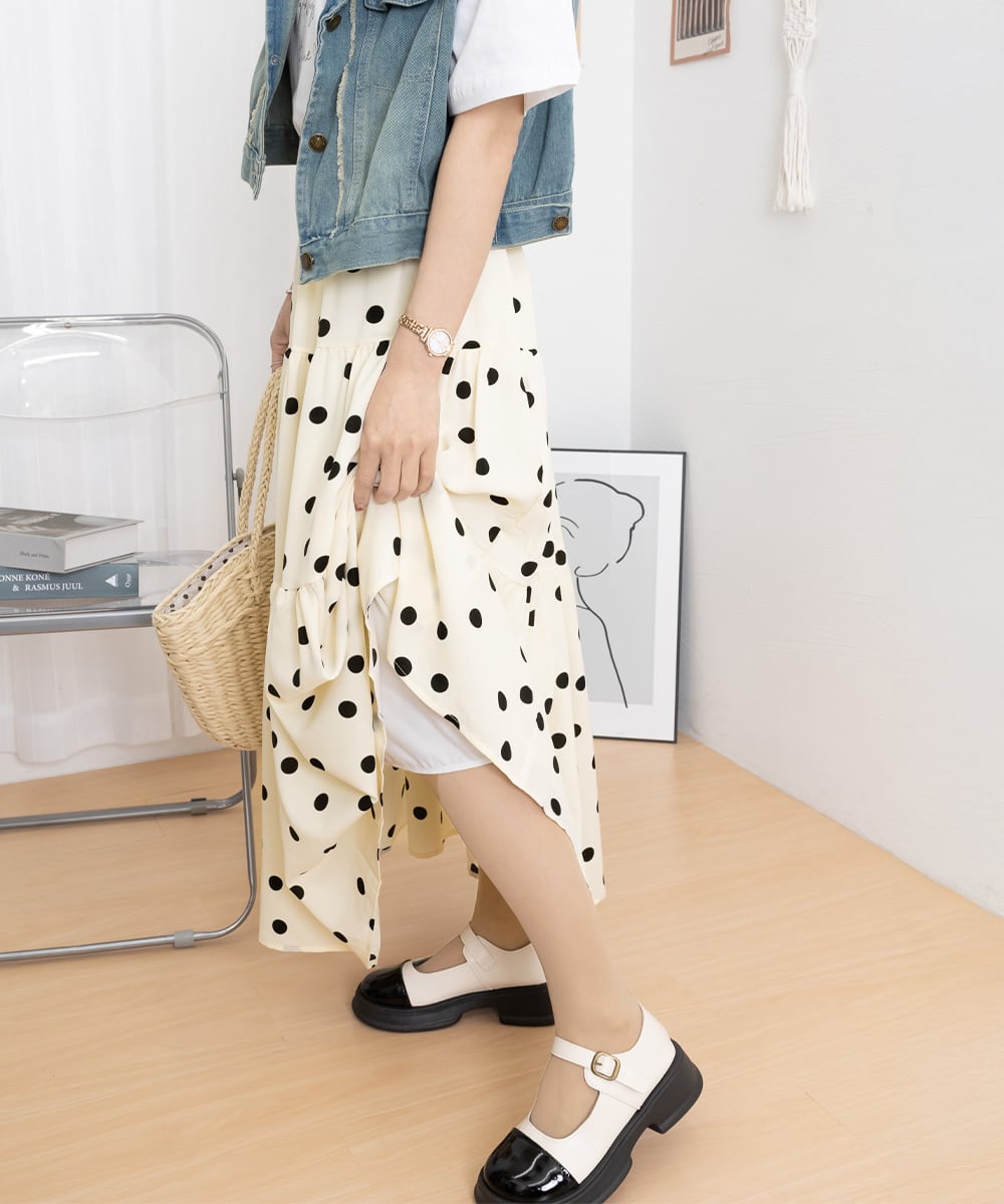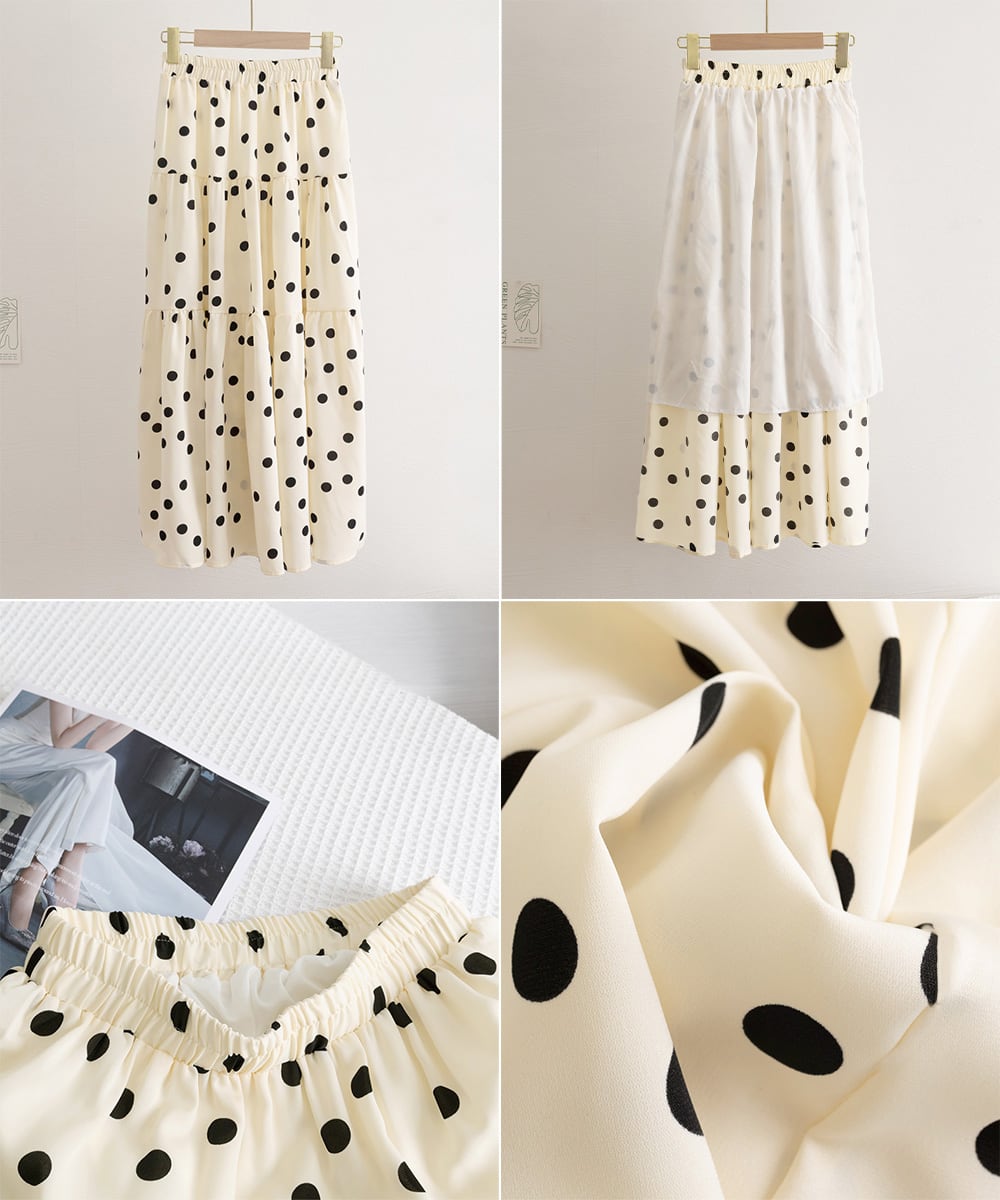 ランダムに散りばめられたドット柄が可愛い!トレンド感たっぷりのティアードスカート
