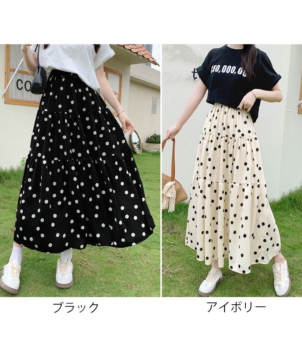 【日本倉庫即納】 ドット柄ティアードスカートフレアスカート