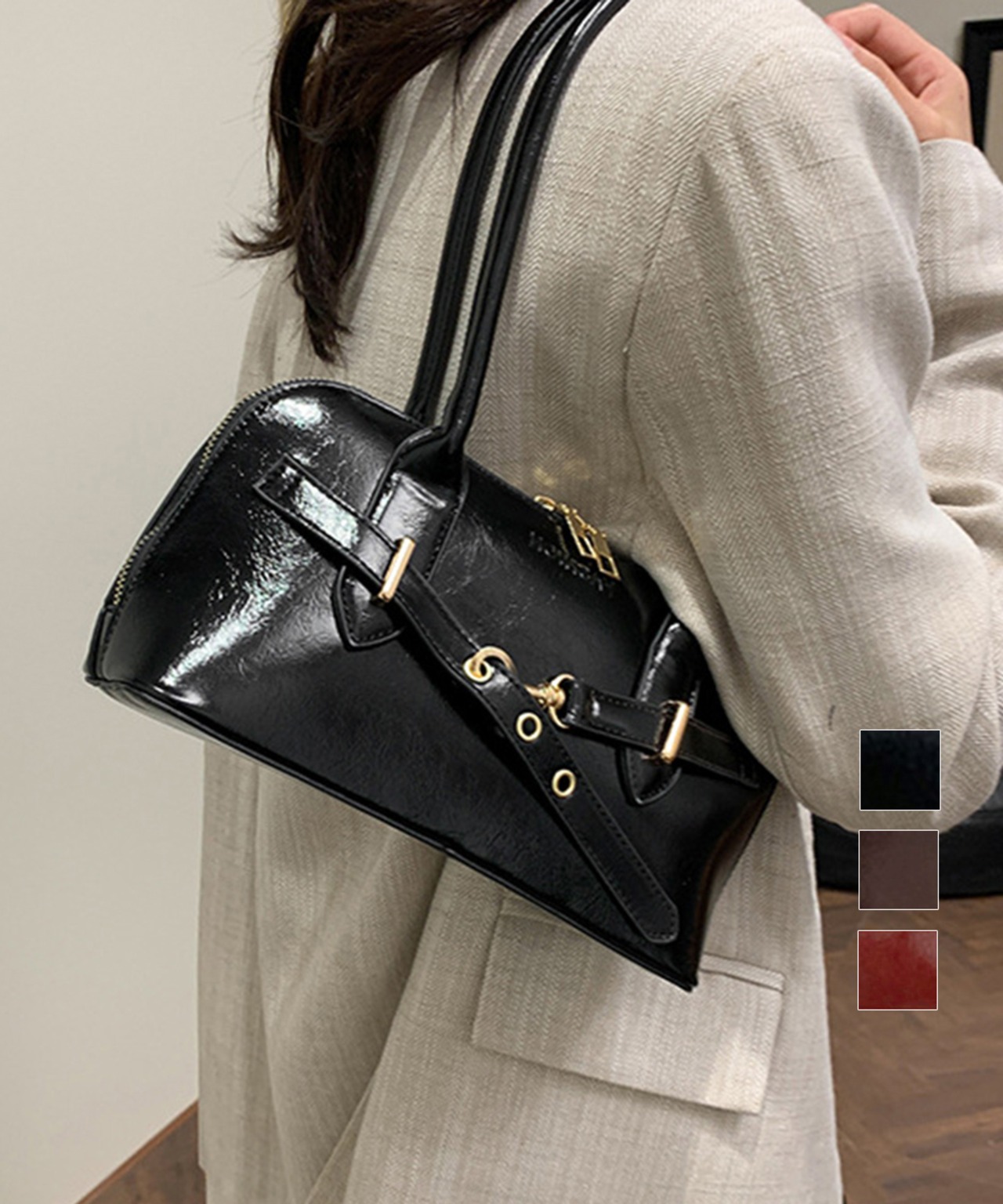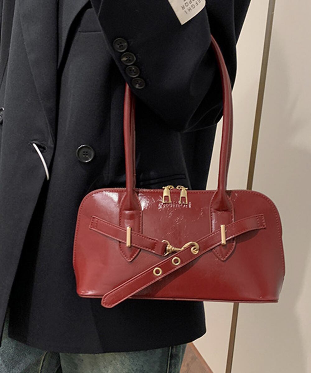 ショルダーバッグ 2way きれいめカジュアル ハンドバッグ おしゃれ 大人可愛い エナメルバッグ ツヤ感 斜め掛け鞄韓国風 通勤通学 ミニボストンバッグ Y2Kバッグ 合皮トレンド感のあるロングハンドルのフェイクレザートートバッグ
