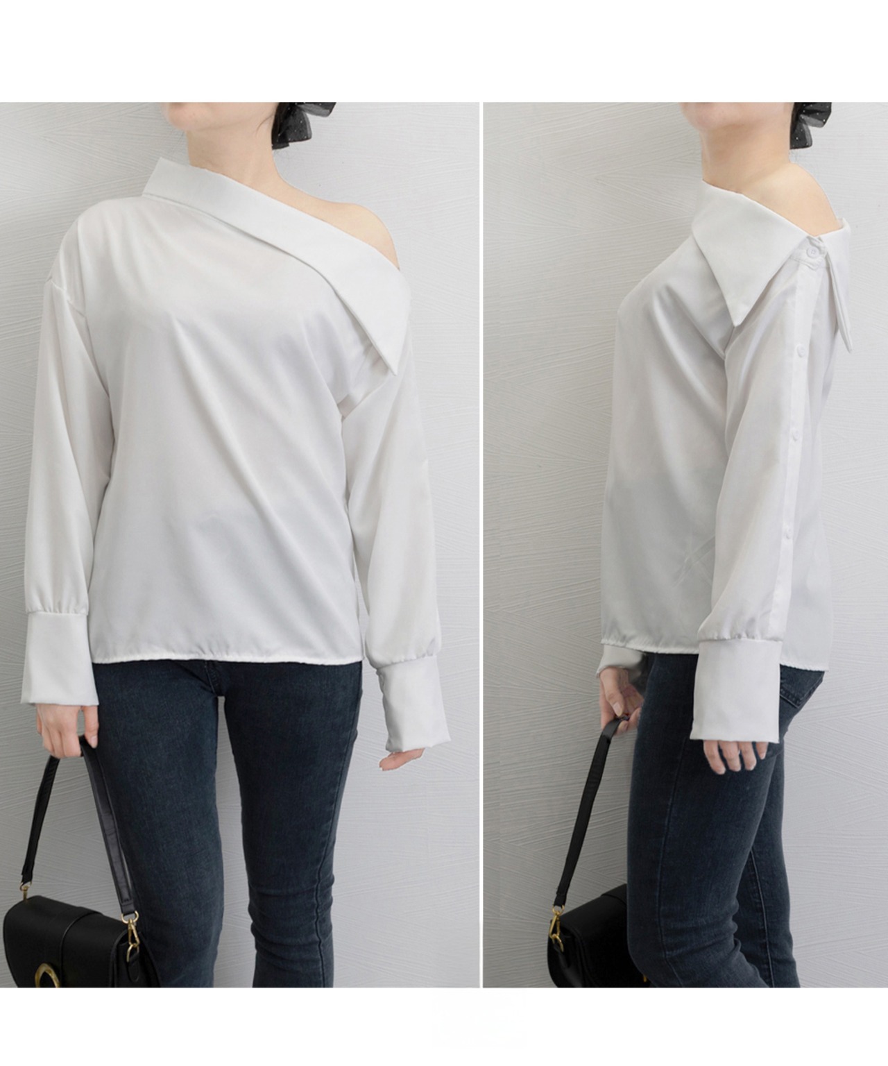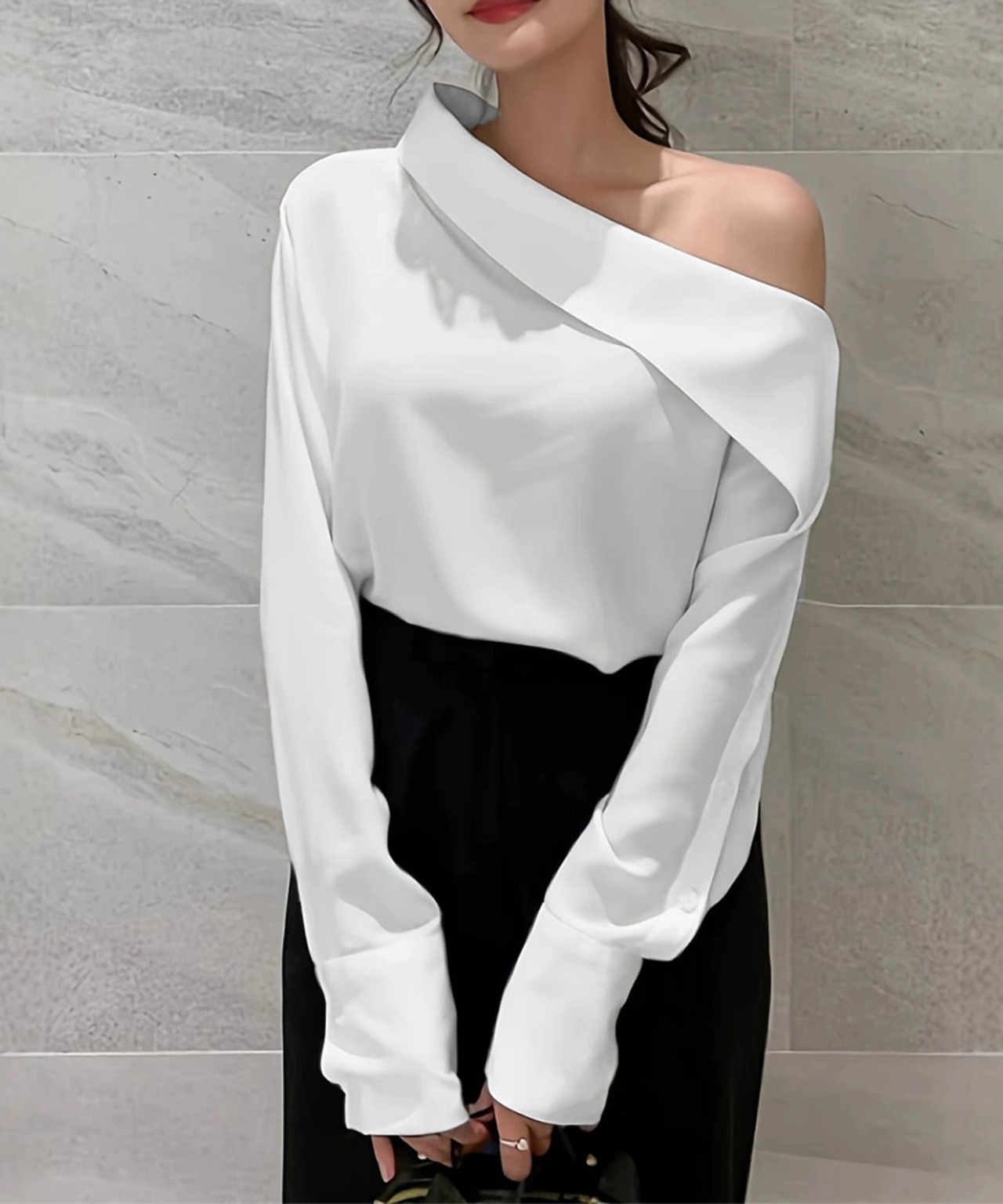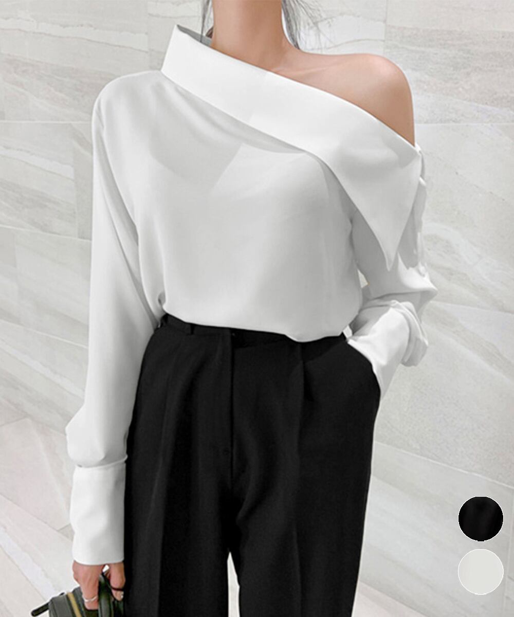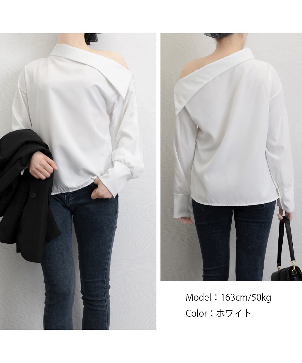 シャツブラウス レディース 肩出しプルオーバー オフィスカジュアル ワンショルダートップス きれいめ セクシーブラウス春着やせブラウス無地 OLコーデおしゃれ 大人女性ブラウス秋スタイリッシュなシルエットが魅力のワンショルダーブラウスアシンメトリーなデザインが洗練された印象を与え、上品な肌見せを演出タイトスカートやスラックスと合わせて、大人のエレガントスタイルに素材:ポリエステル100%カラー:ブラック/ホワイトサイズ:ワンサイズ着丈:約60cm ゆき:約83cm 身幅:約49cm 胸囲:約98cm裏地:なし伸縮性:なし透け感:ホワイトのみややあり生産国:中国※すべて平置きサイズです(採寸方法違いより、多少の誤差がございますので、ご了承ください)。※海外輸入品のため、商品の細部仕様は多少異なる場合がございます。予めご了承の上、ご注文お願い致します。