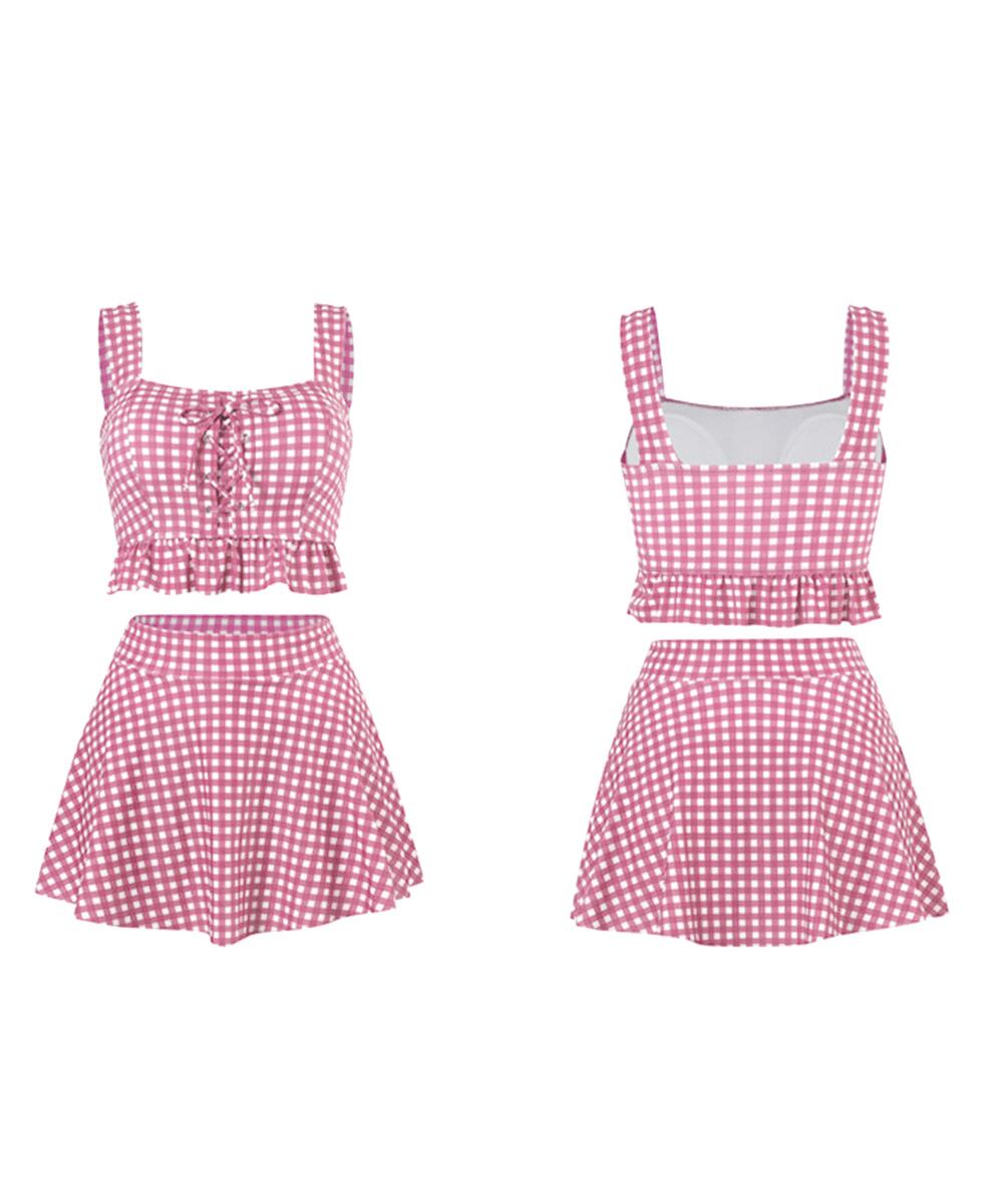 大人ガーリーな印象を演出するギンガムチェックのツーピース水着