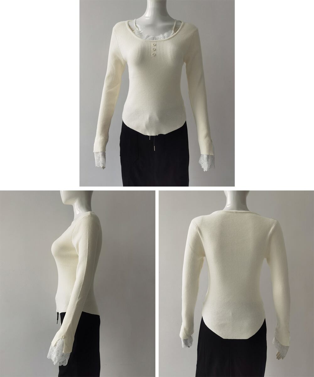 【日本倉庫即納】 レイヤードニットトップス レース切替え