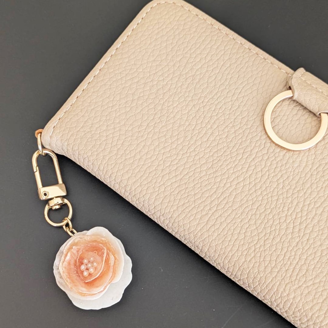 天然貝殻のシェルローズキーホルダー 大人かわいい海モチーフアクセサリー