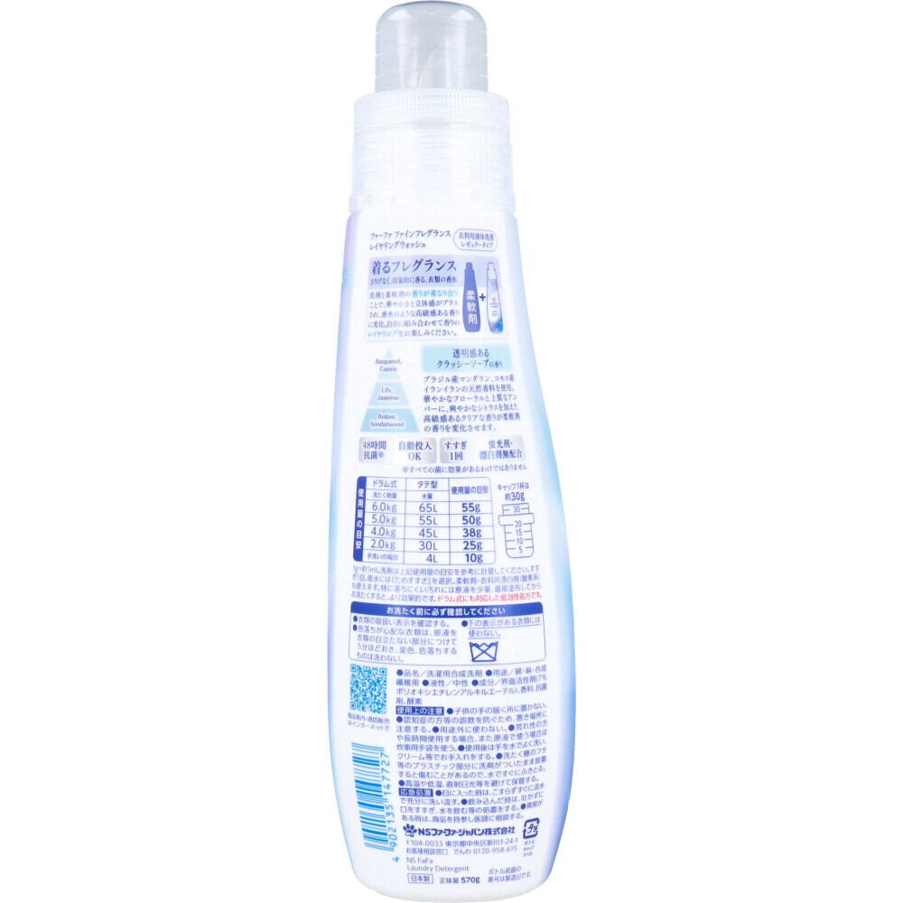 【3セット】ファーファ ファインフレグランス レイヤリングウォッシュ 洗たく用洗剤 570g