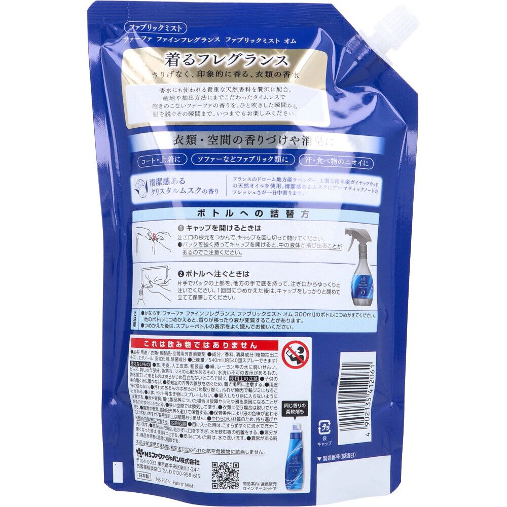 ★必ず「ファーファ ファインフレグランス ファブリックミスト オム 300mL」のボトルにつめかえてください。