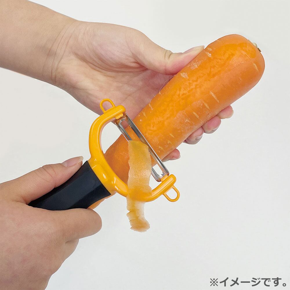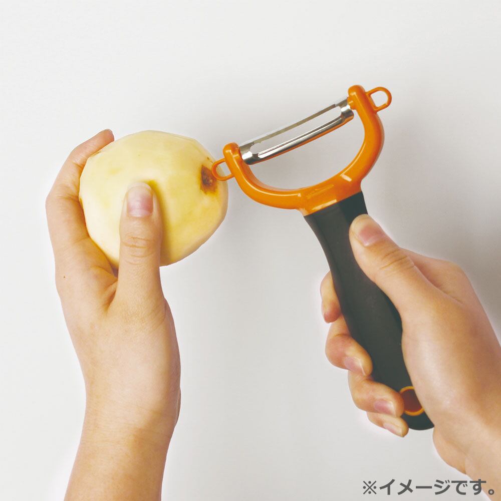 食材にフィットするわん曲刃。両サイドの芽取りで使いやすい。※刃は大変鋭利になっております。使用中や洗う際には十分ご注意ください。
