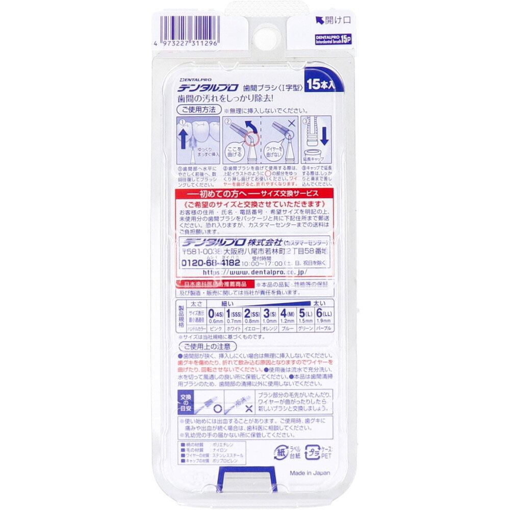 【3セット】デンタルプロ 歯間ブラシ I字型 激細タイプ サイズ0(SSSS) 15本入×6個セット
