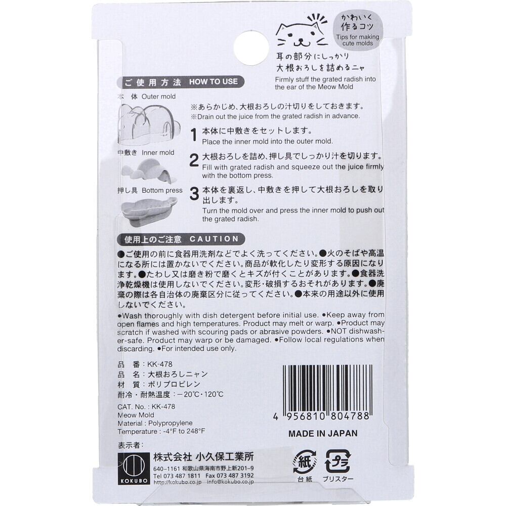 ●BPA free。★かわいく作るコツ:耳の部分にしっかり大根おろしを詰めるニャ。