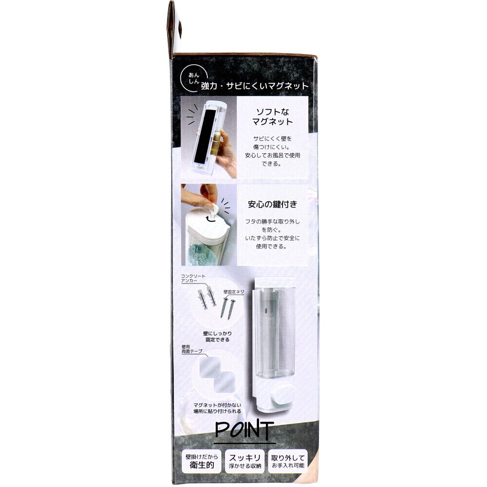 ●あんしん強力・サビにくいマグネット・ソフトなマグネット。サビにくく壁を傷つけにくい。安心してお風呂で使用できる。・安心の鍵付き。フタの勝手な取り外しを防ぐ。いたずら防止で安全に使用できる。
