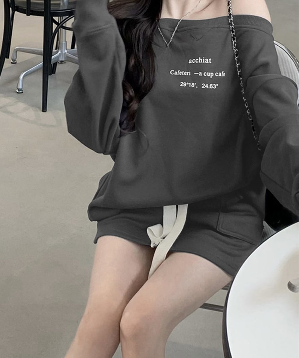 ゆったりとしたシルエットとドロショルデザインで、抜け感と女性らしさを演出。