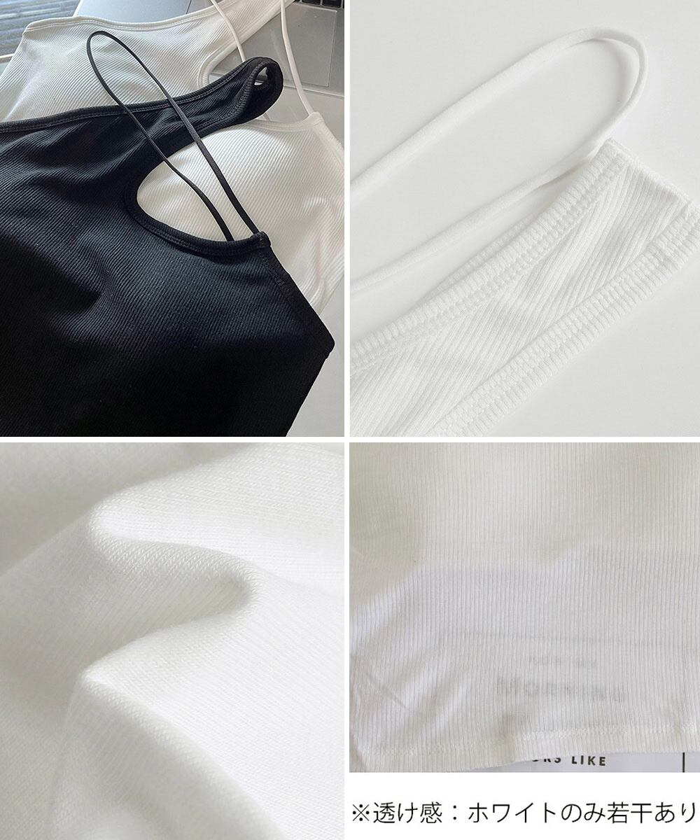 クロスホルターネック ショートタンクトップ カットアウトリブキャミソール アシンメトリー見せインナー無地インナートップス