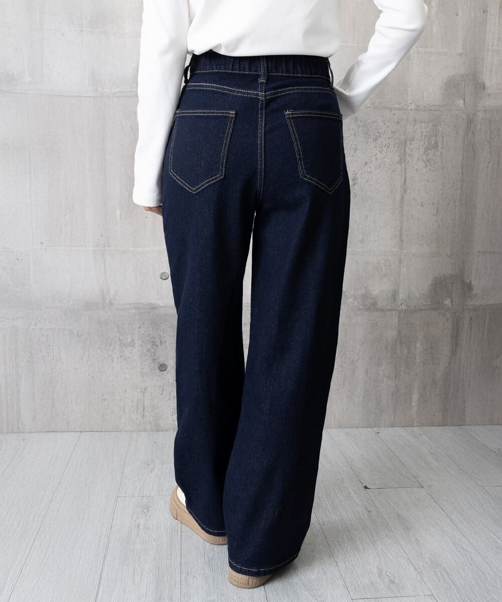 程よくハリのあるデニム素材で、脚のラインをきれいに見せてくれるのがポイント。