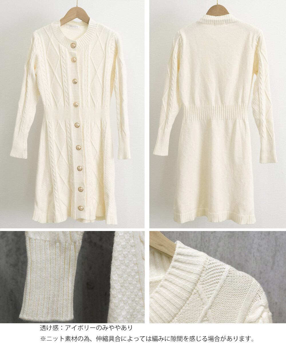 ゴールドボタンショートワンピース レディース 大人きれいめ フェミニン ロング丈ニットカーディガン 着やせセータードレス
