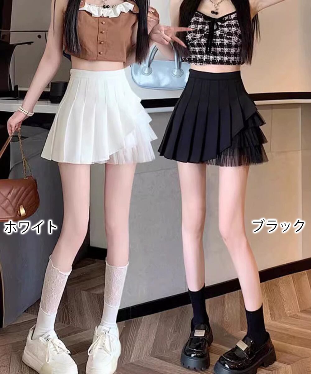 【日本倉庫即納】 プリーツミニスカートチュール切替スカート
