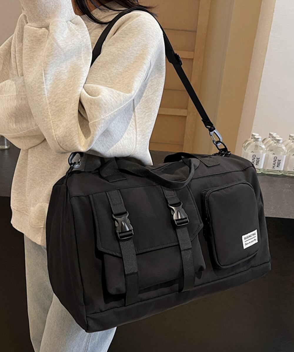 スポーツジムバッグ 1泊2日出張合宿鞄 ショルダーバッグ黒