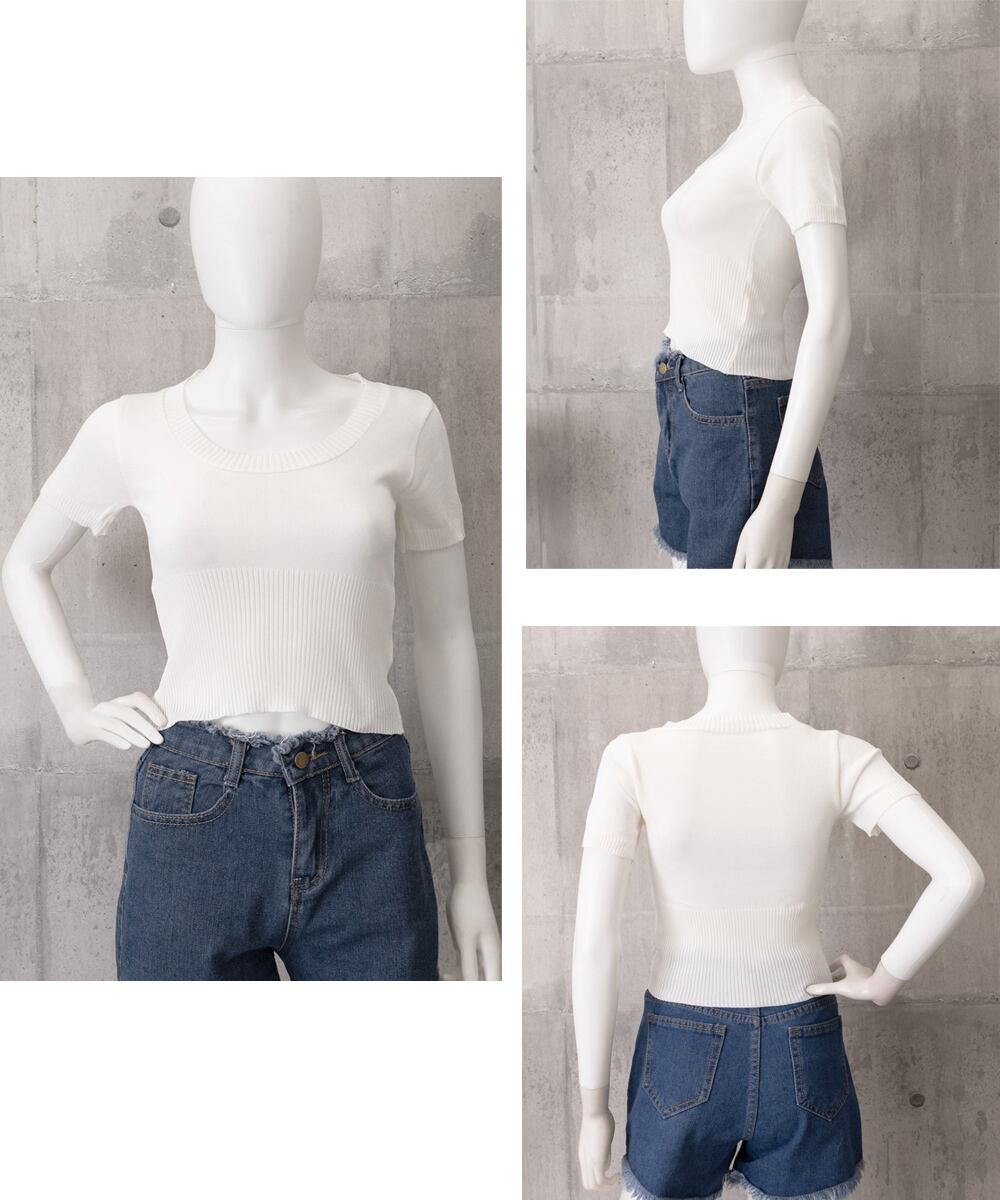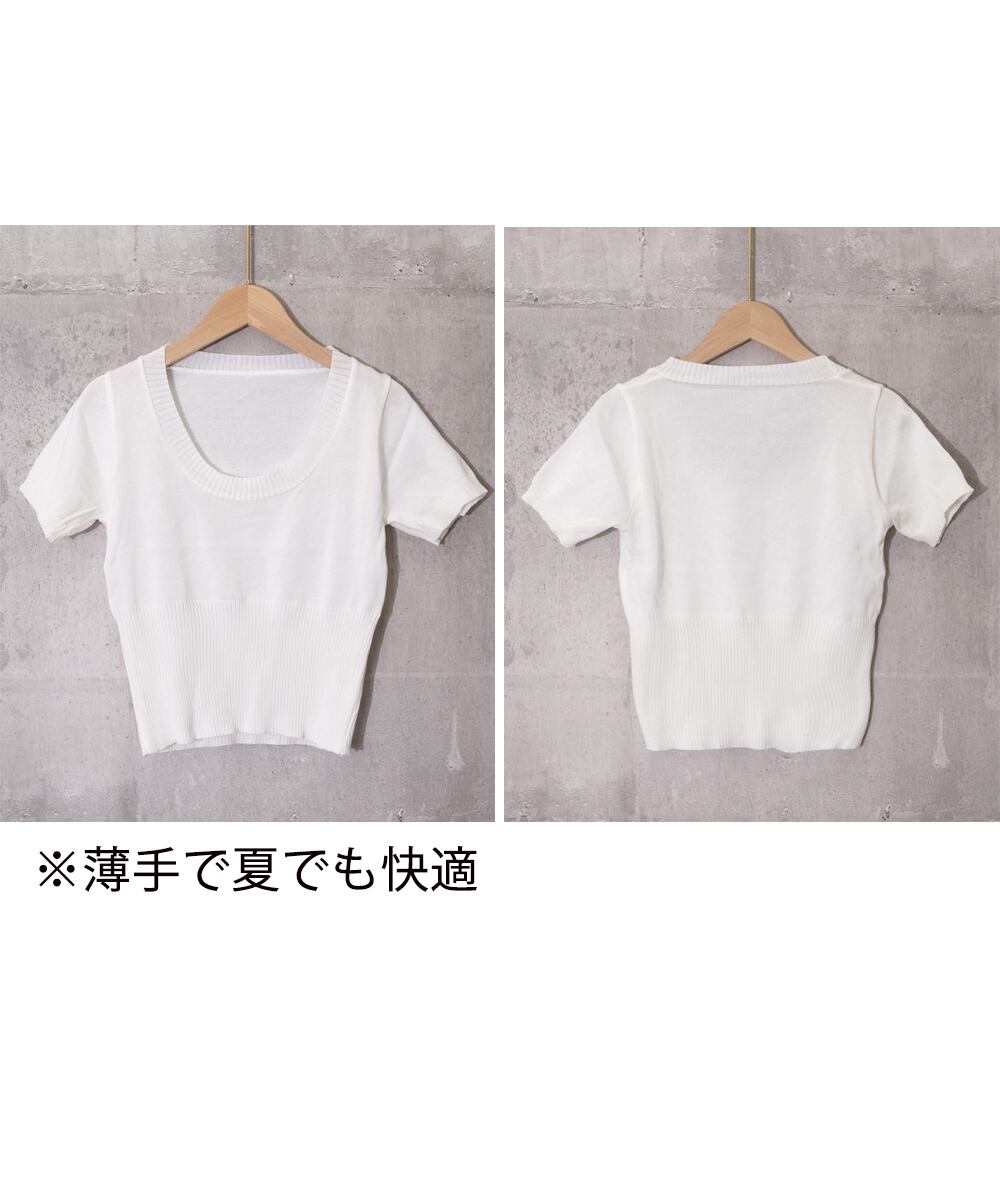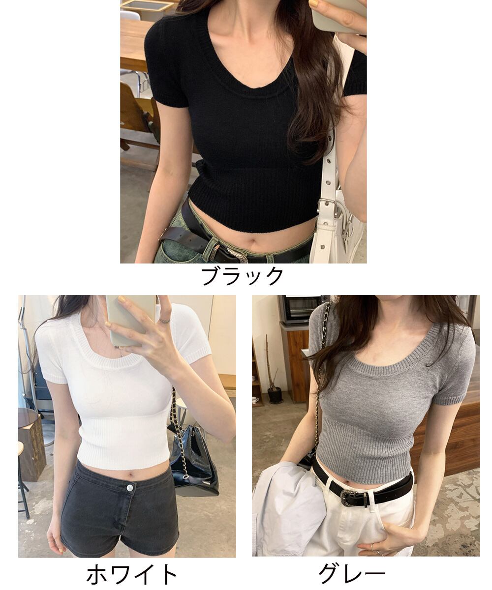 【日本倉庫即納】 サマーニット Uネック クロップド丈夏服