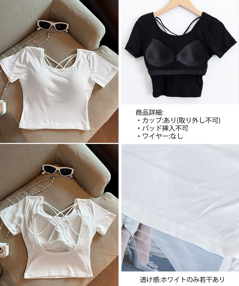 【日本倉庫即納】 背中あきトップス カップ付き ブラトップ