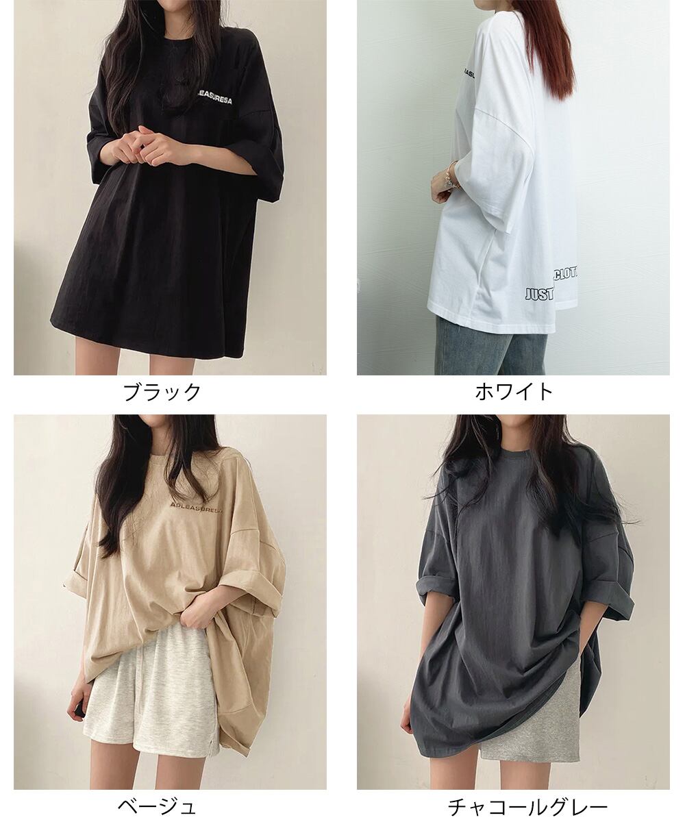 ロングtシャツ オーバーサイズ 英文字ロゴ 半袖Tシャツ 着やせ カットソー ビッグtシャツ大人カジュアル クルーネック