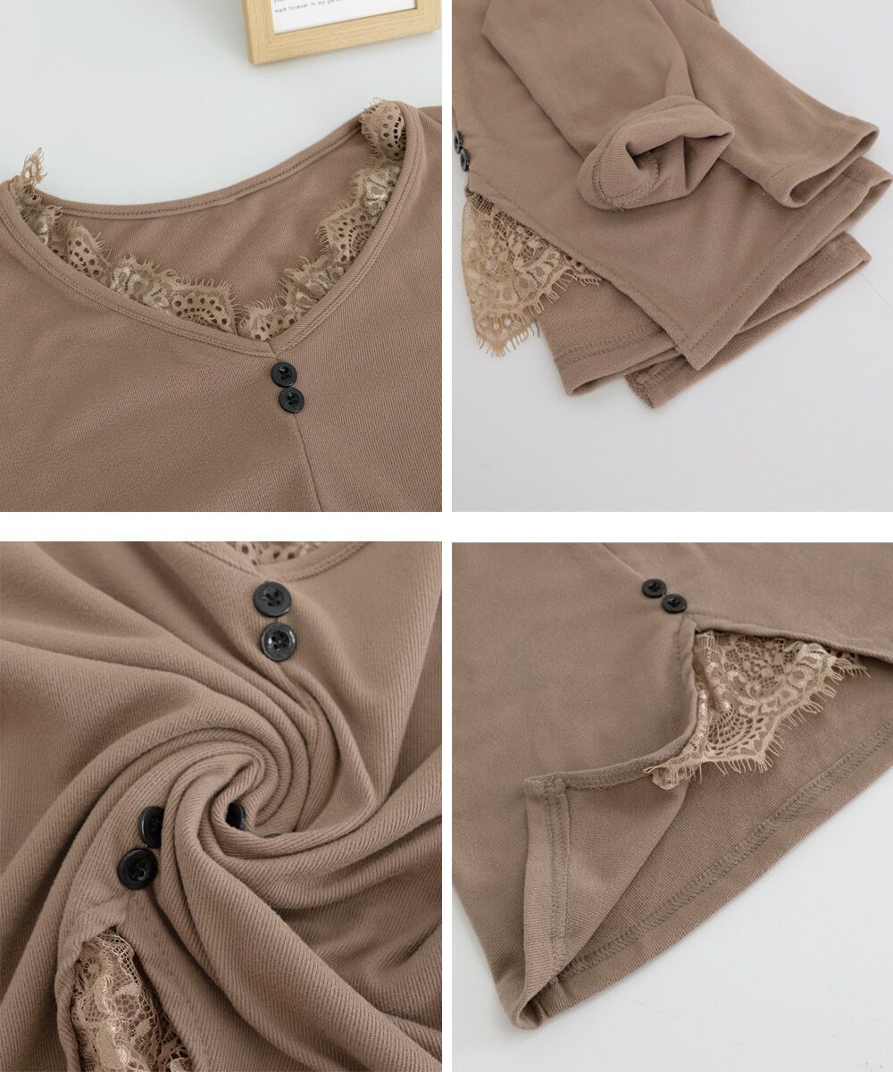 【日本倉庫即納】 カットソー レース切り替え 長袖Tシャツ