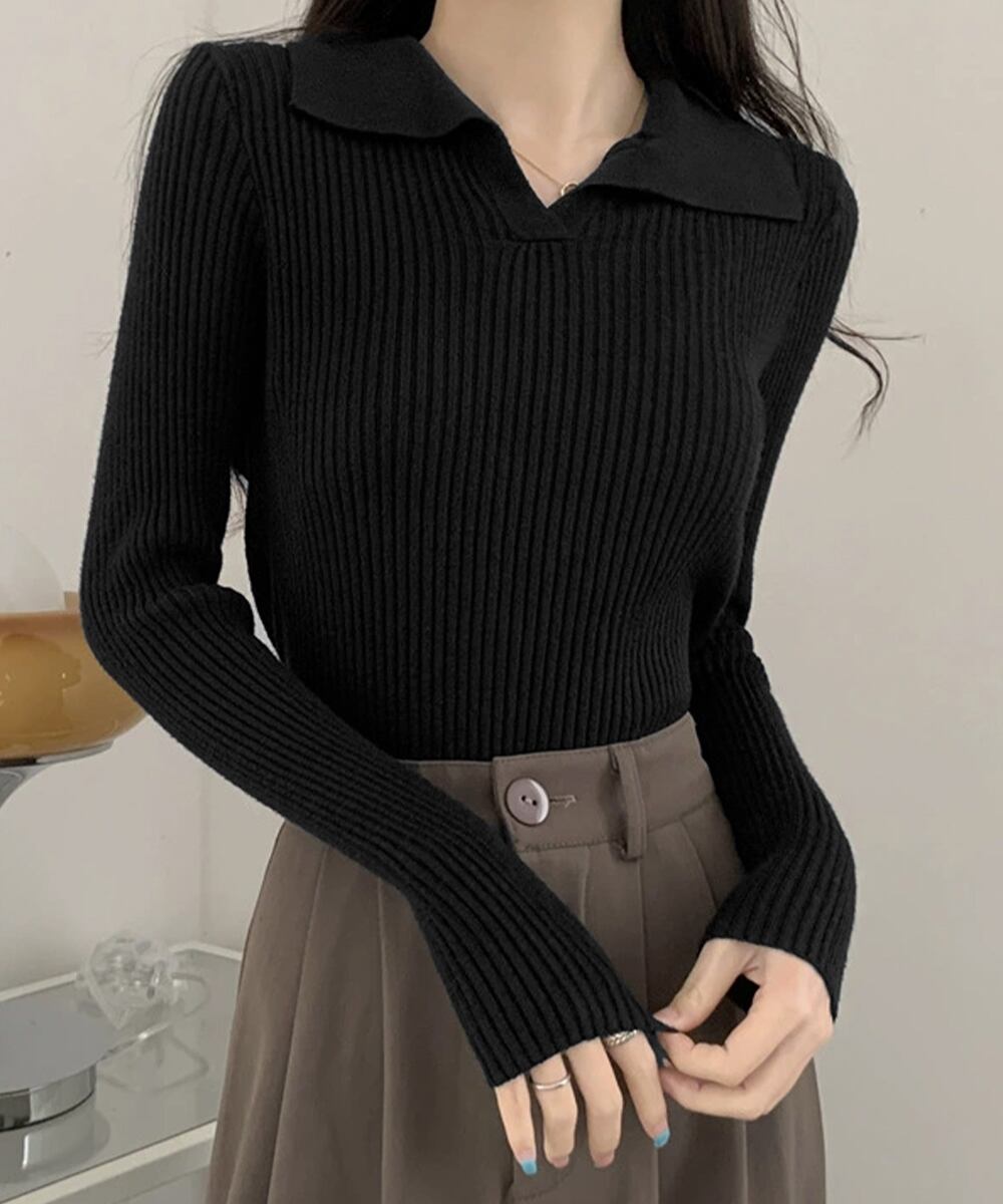 【日本倉庫即納】 ポロニットトップス秋新作リブニット韓国風