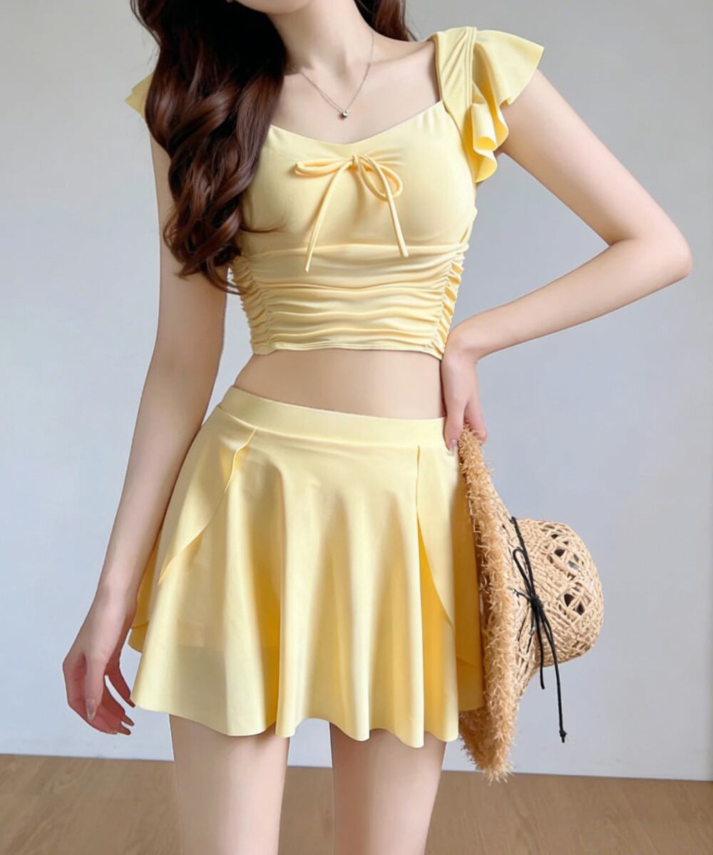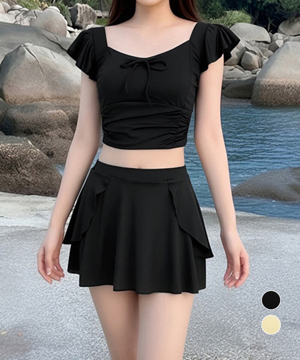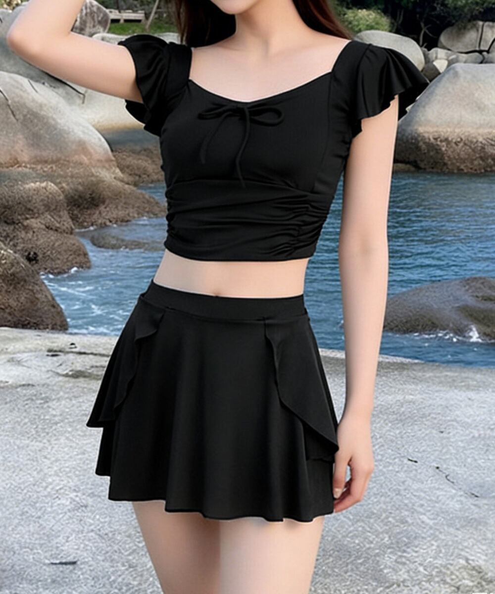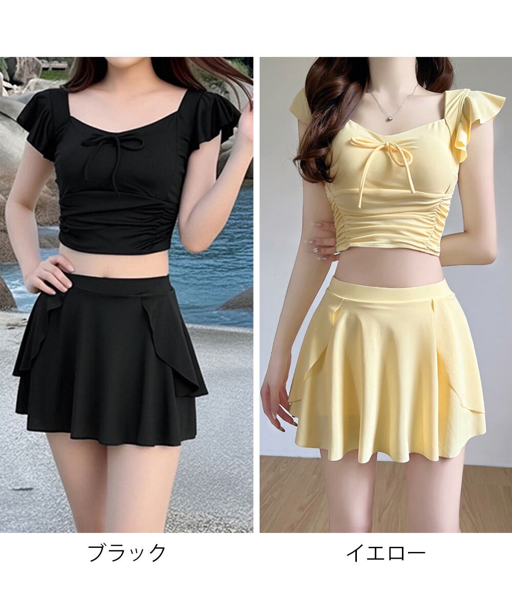 水着2点セット フリル水着 大人ガーリー セパレート水着 パンツ付きミニスカート 露出控えめビーチウェア 夏 海 海水浴