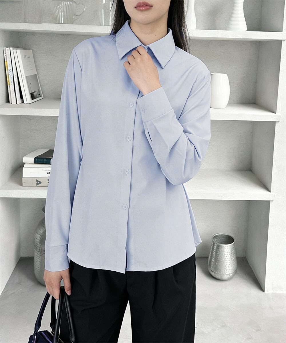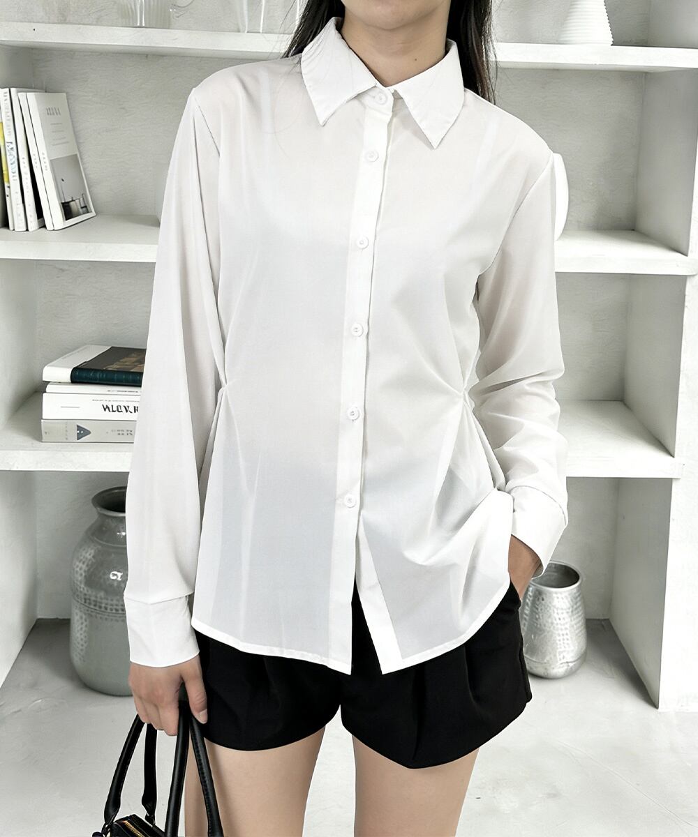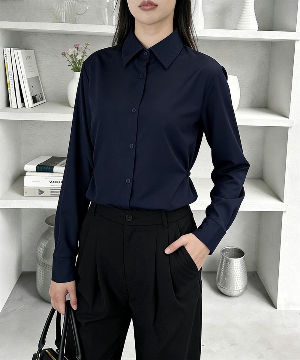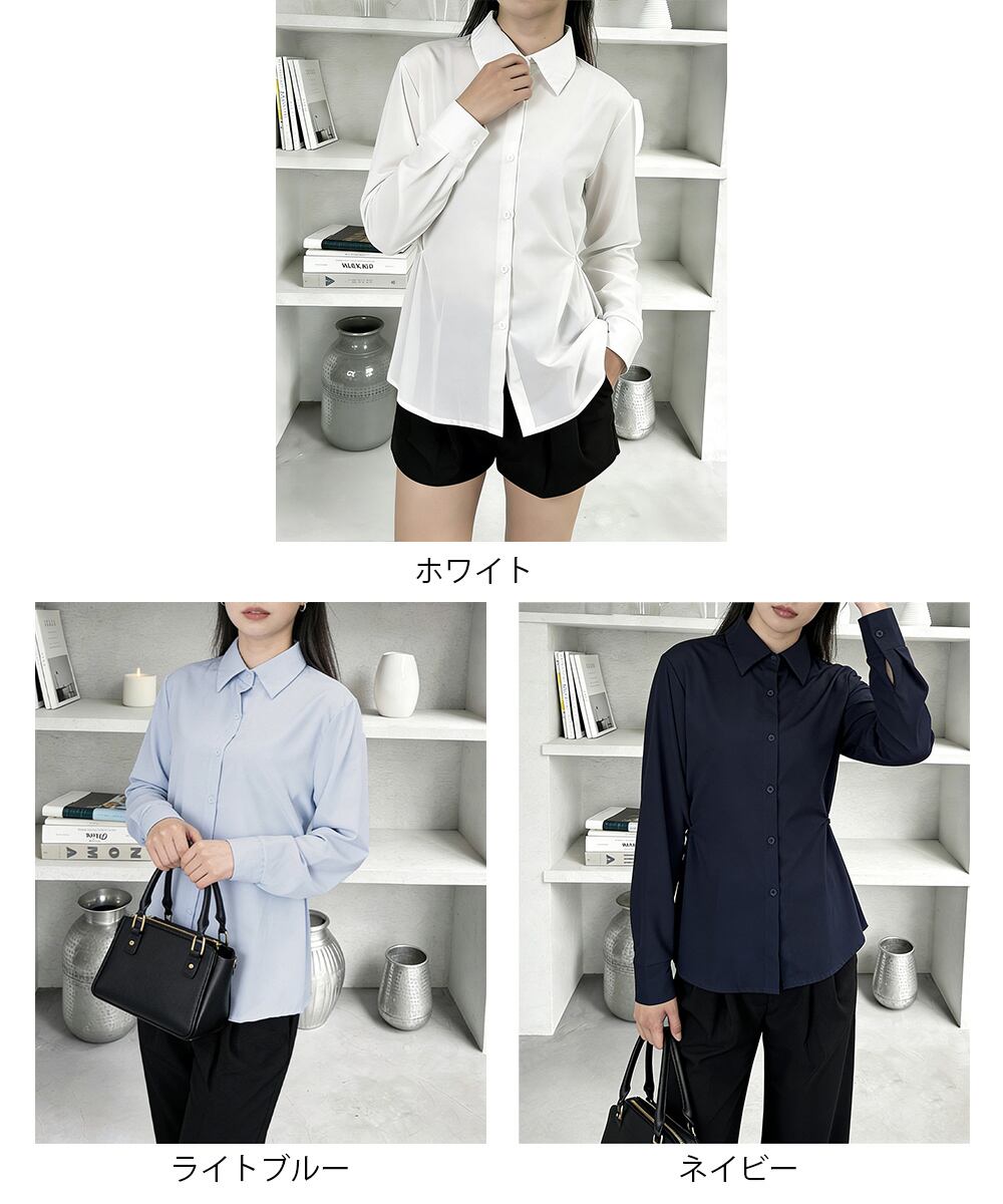 【日本倉庫即納】 サイドボタンタックシャツブラウス長袖春服