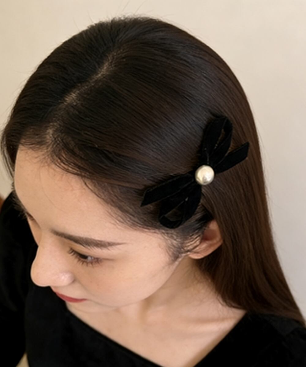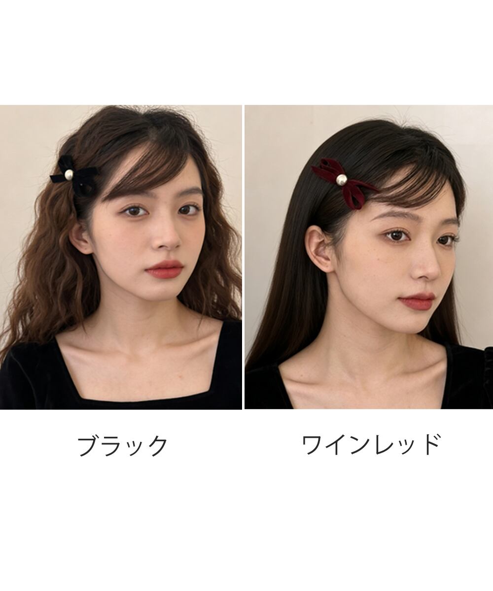女性らしいシルエットが印象的なベロア調リボンヘアクリップ。
