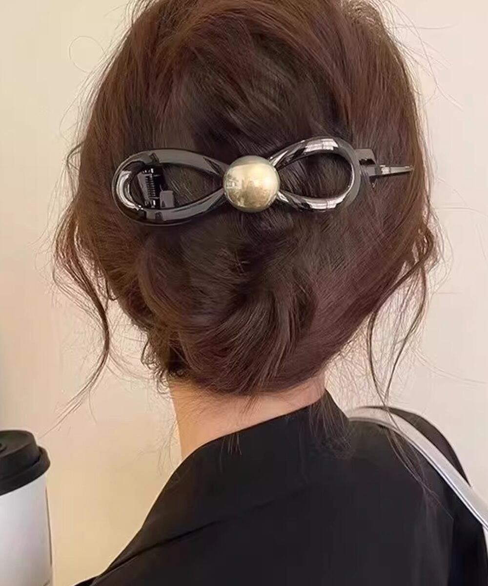フェイクパール装飾が特徴のバナナクリップです。