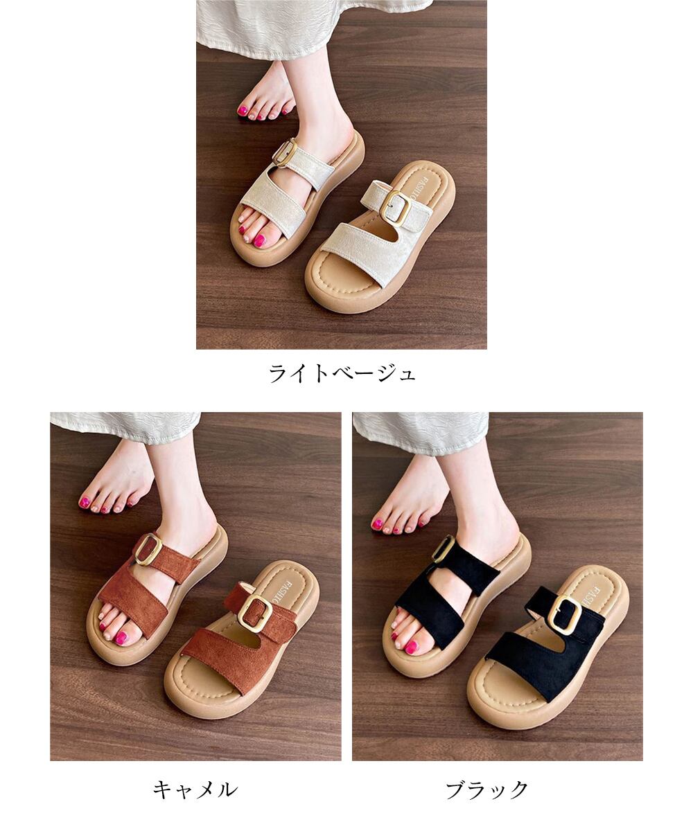 スリッパサンダル コンフォートサンダル ボリュームソール バックル飾り おしゃれ 大人可愛い 履きやすい 海旅行トラベル