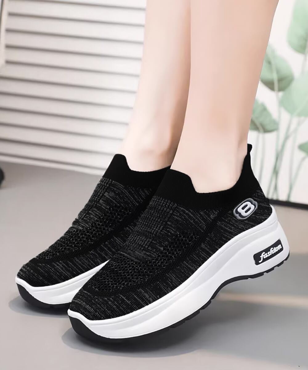 伸縮性のあるニット素材を使用し、足を包み込むようなやさしい履き心地。