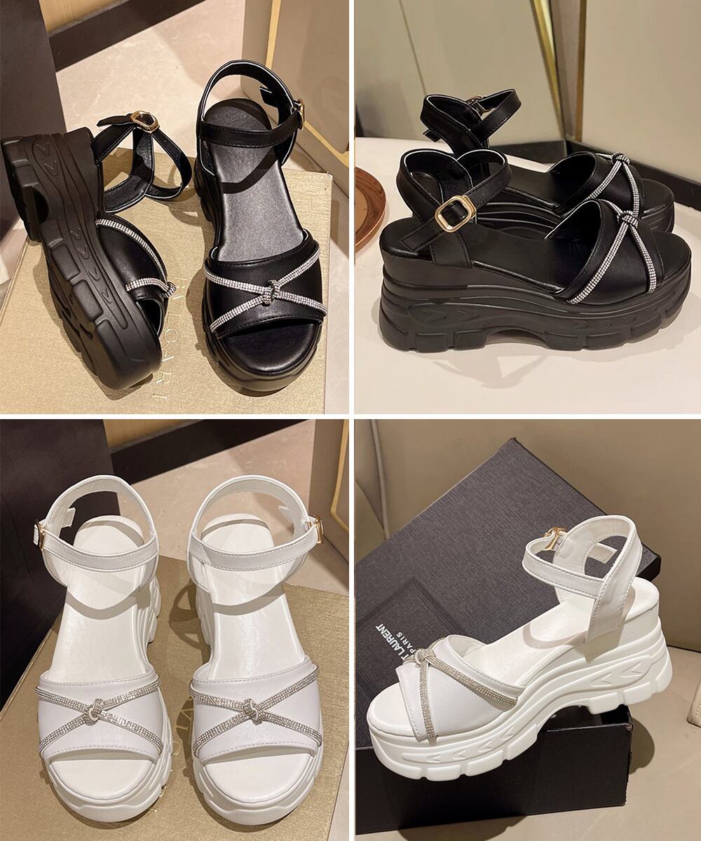 ボリュームソール靴 キラキラ夏サンダル 韓国風きれいめ脚長