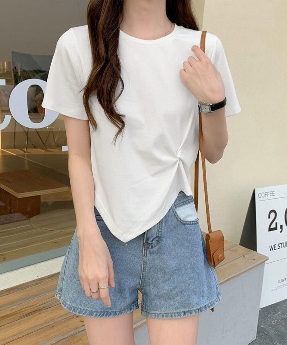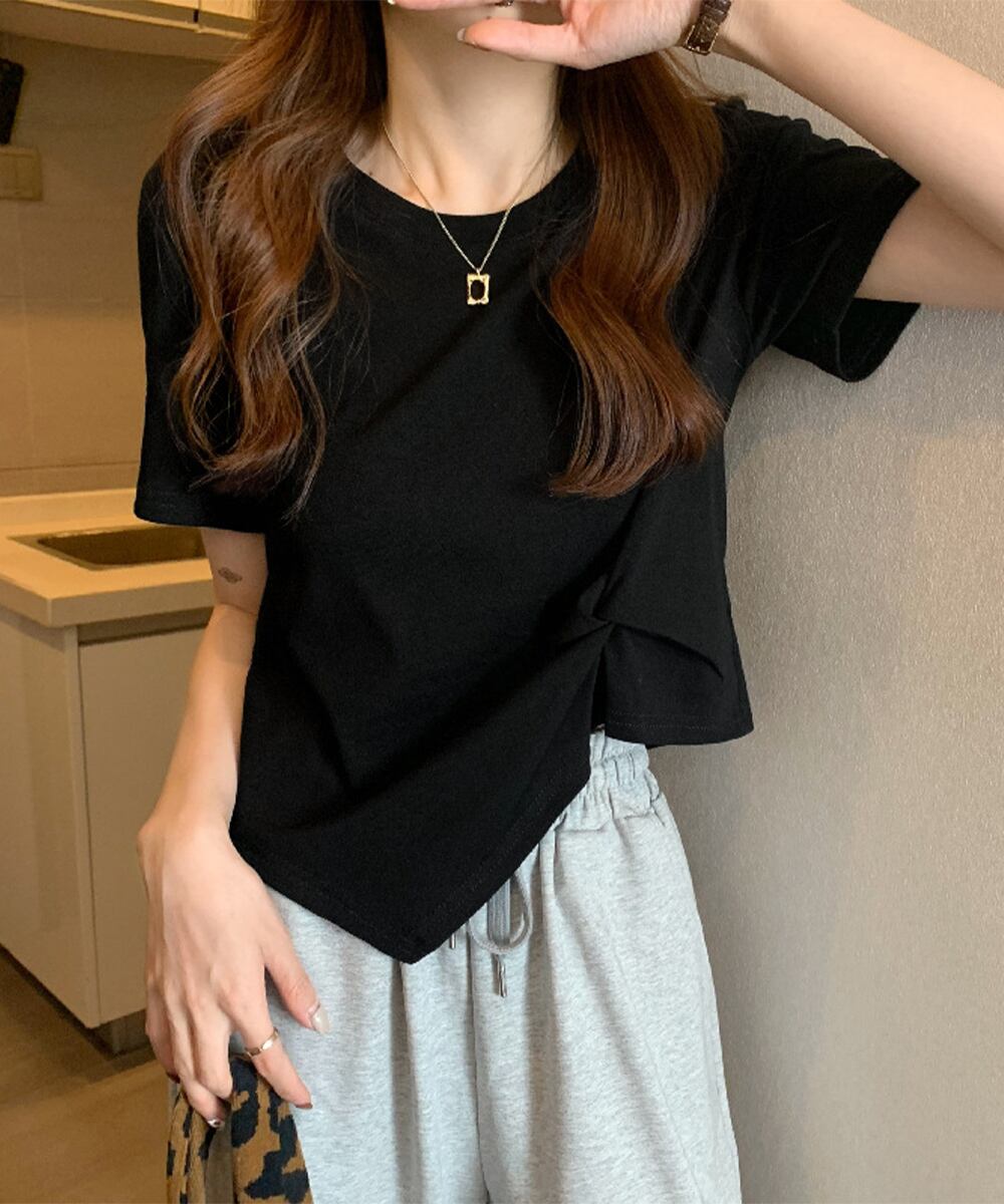 不規則ヘムトップス ベーシックtシャツ クロップドトップス
