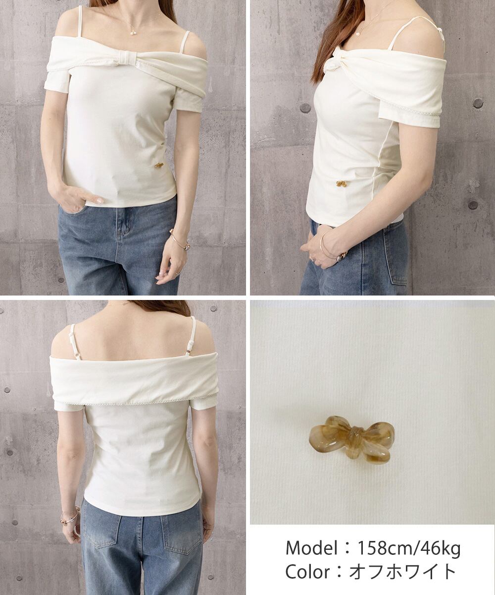 【日本倉庫即納】 リボン オフショルダートップスレディース