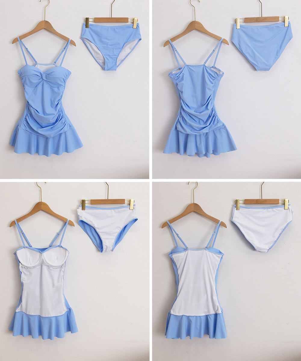 レディース水着2点セット ギャザーキャミワンピース ショーツ セパレート水着露出控えめママ水着おしゃれスイムウェア着やせ