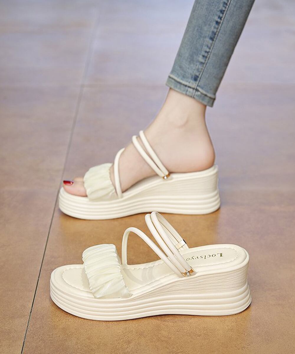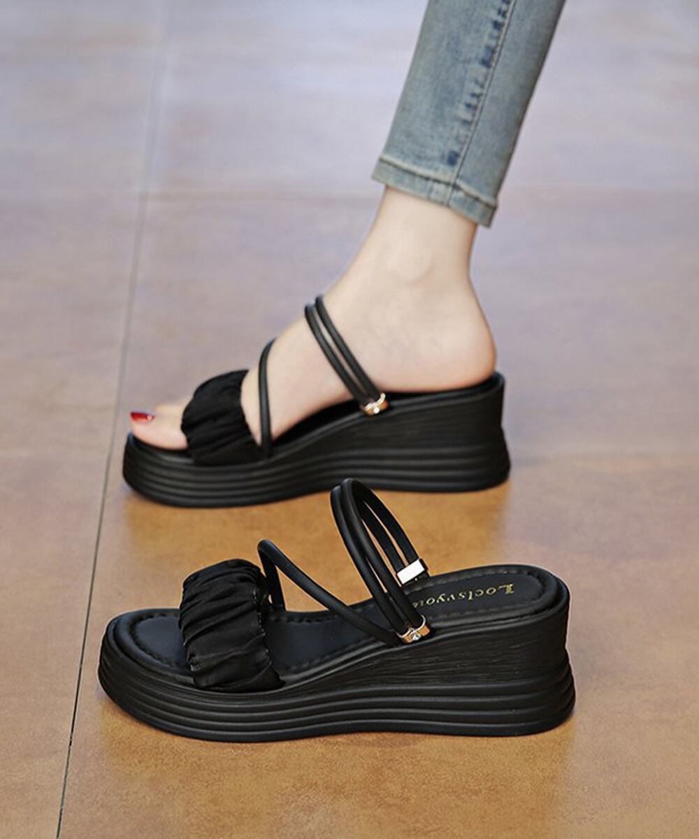 プリーツデザインが旬の2WAY厚底サンダル。
