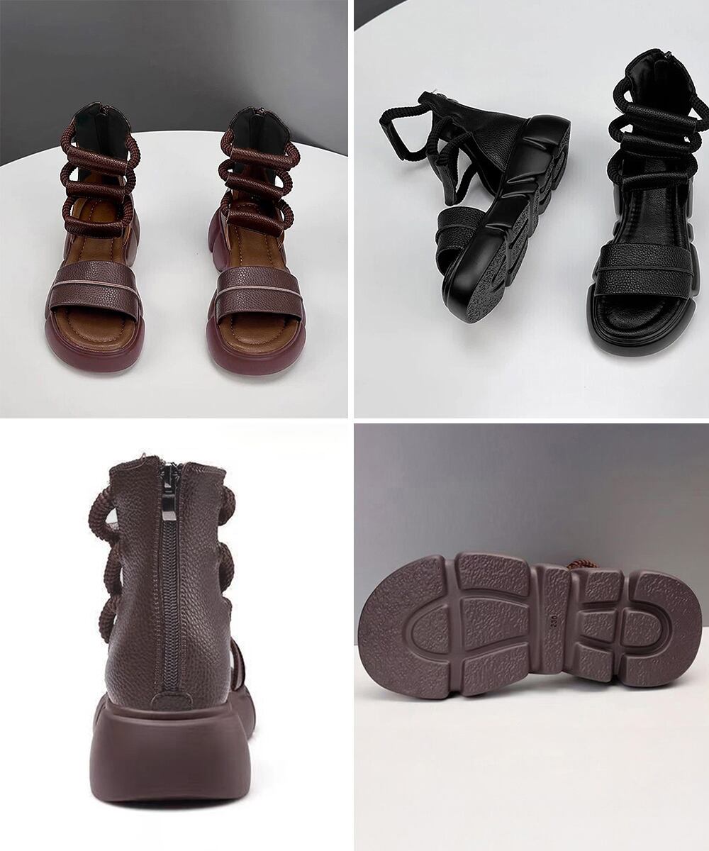 厚底ボリュームソールのローマ風ブーツサンダル。