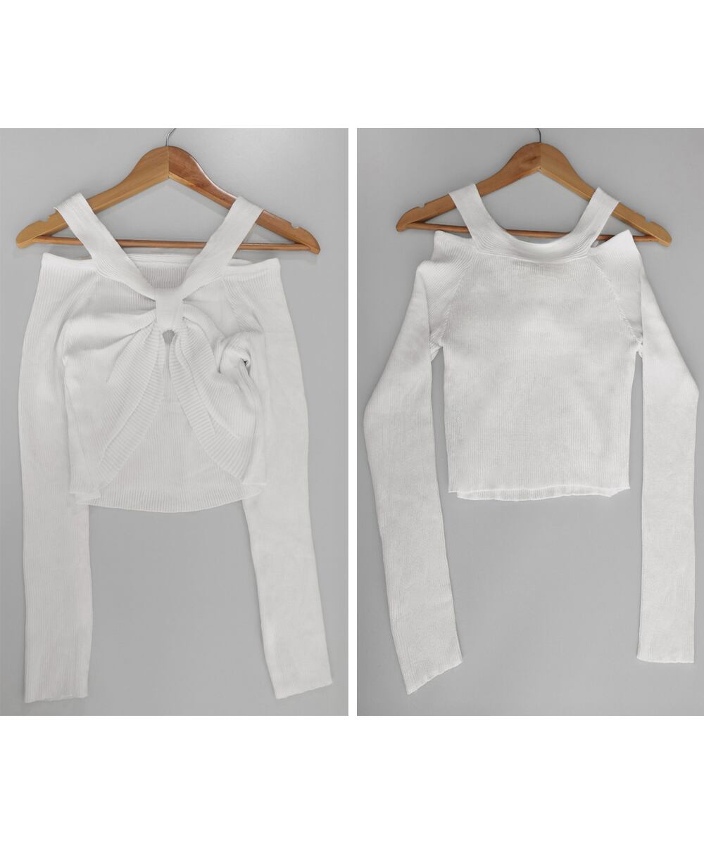 レディース ニットウエア ニットプルオーバー 肩出し カジュアル ニットセーター 着やせ ニットインナー