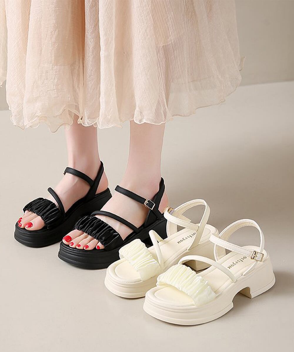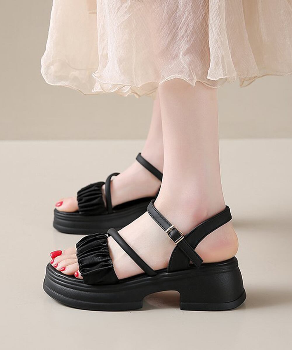 【日本倉庫即納】 厚底サンダル 太ヒールフリルサンダル美脚